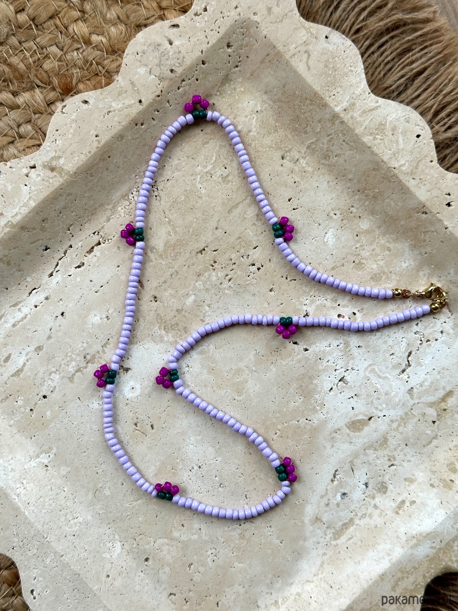 Naszyjnik wykonany ręcznie z drobnych emaliowanych koralików imitujących Owocki.