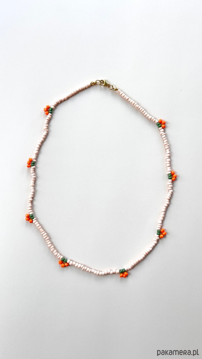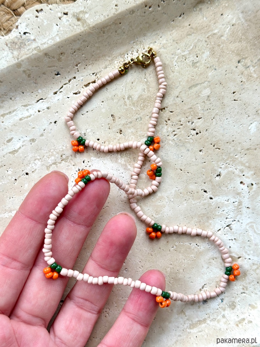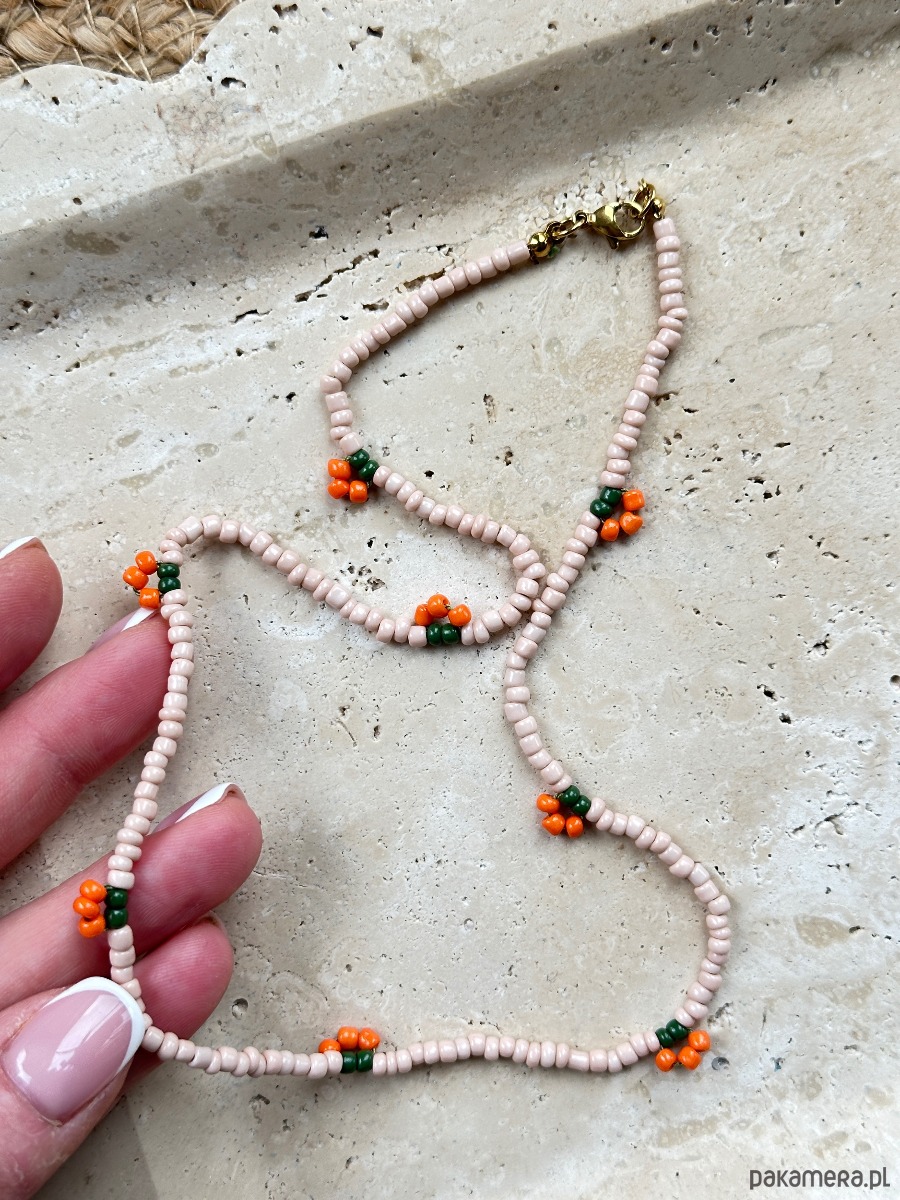 Naszyjnik wykonany ręcznie z drobnych emaliowanych koralików imitujących Owocki.