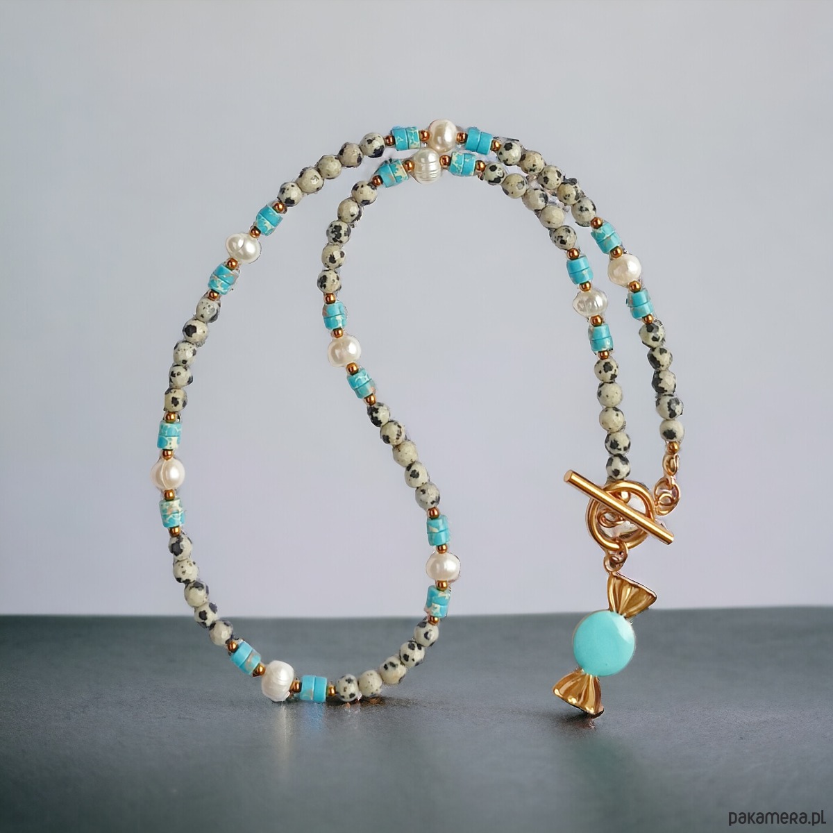 NASZYJNIK candy : jaspis dalmatyński.perły.jaspis cesarski