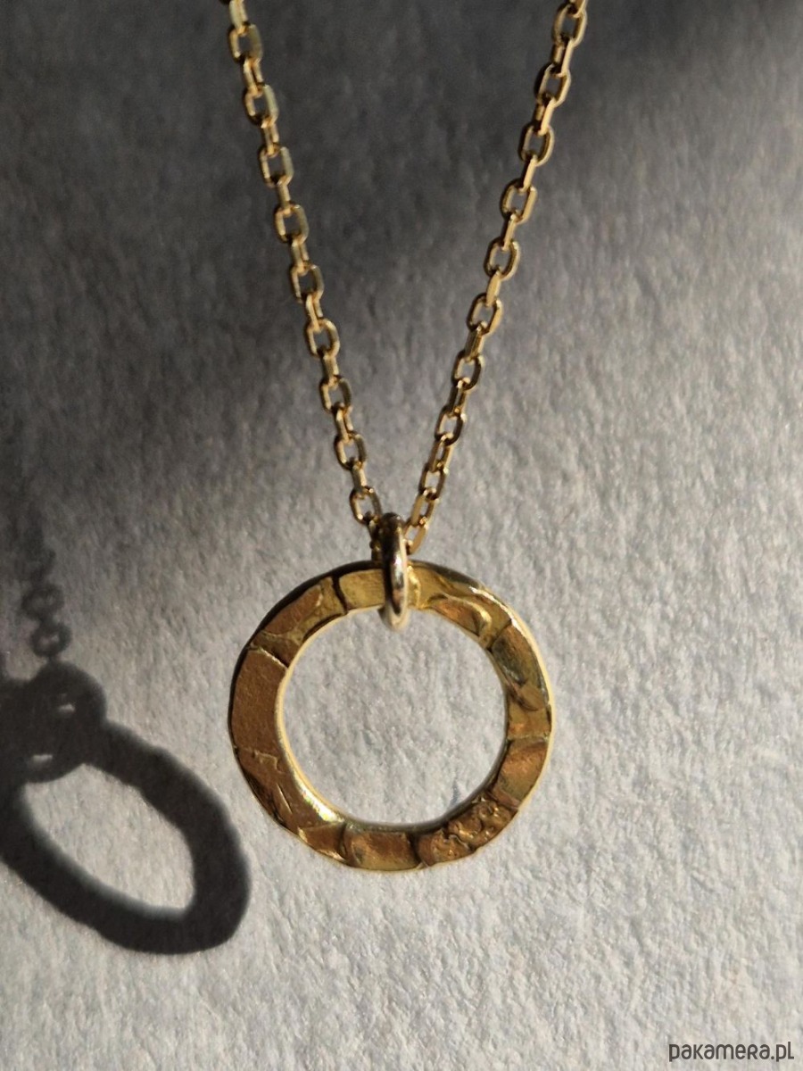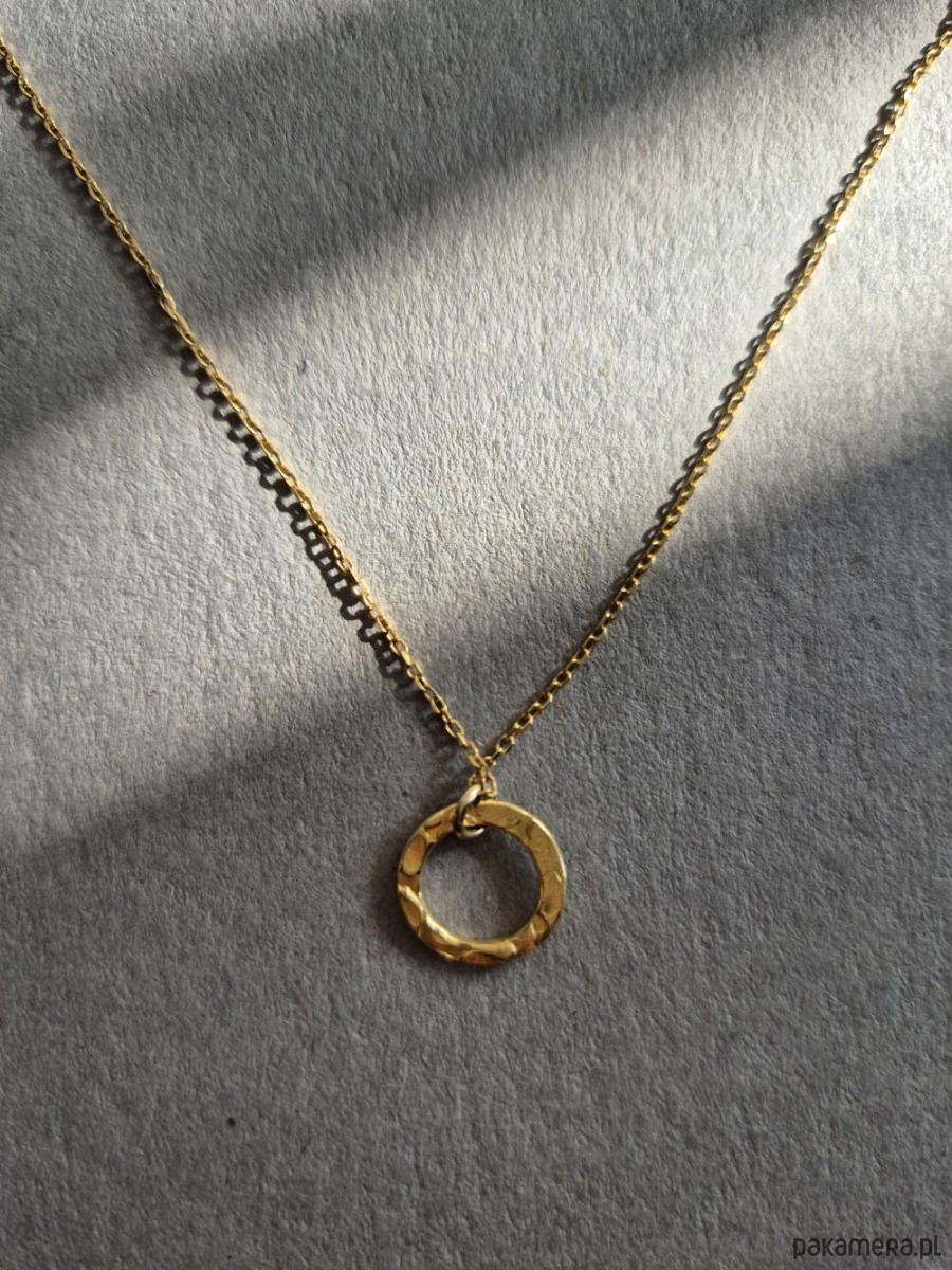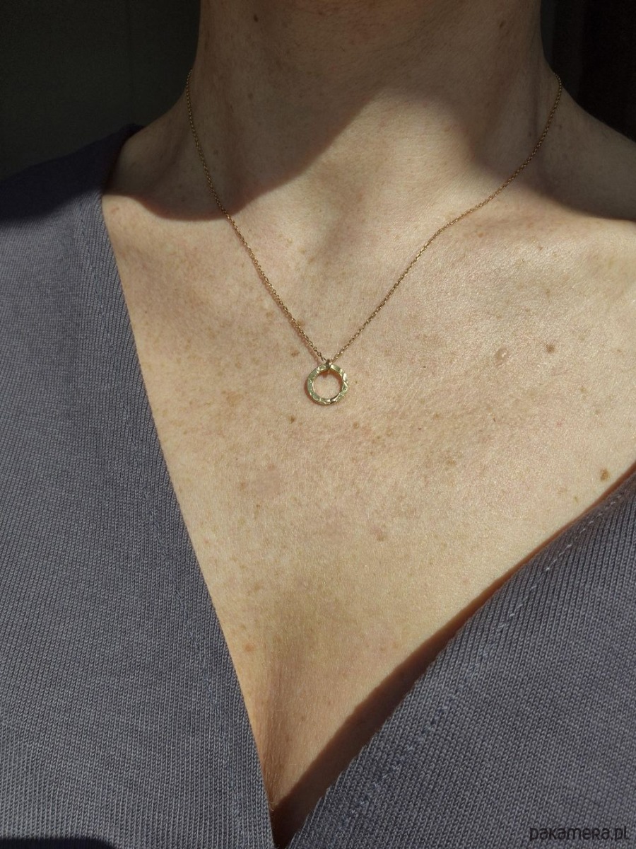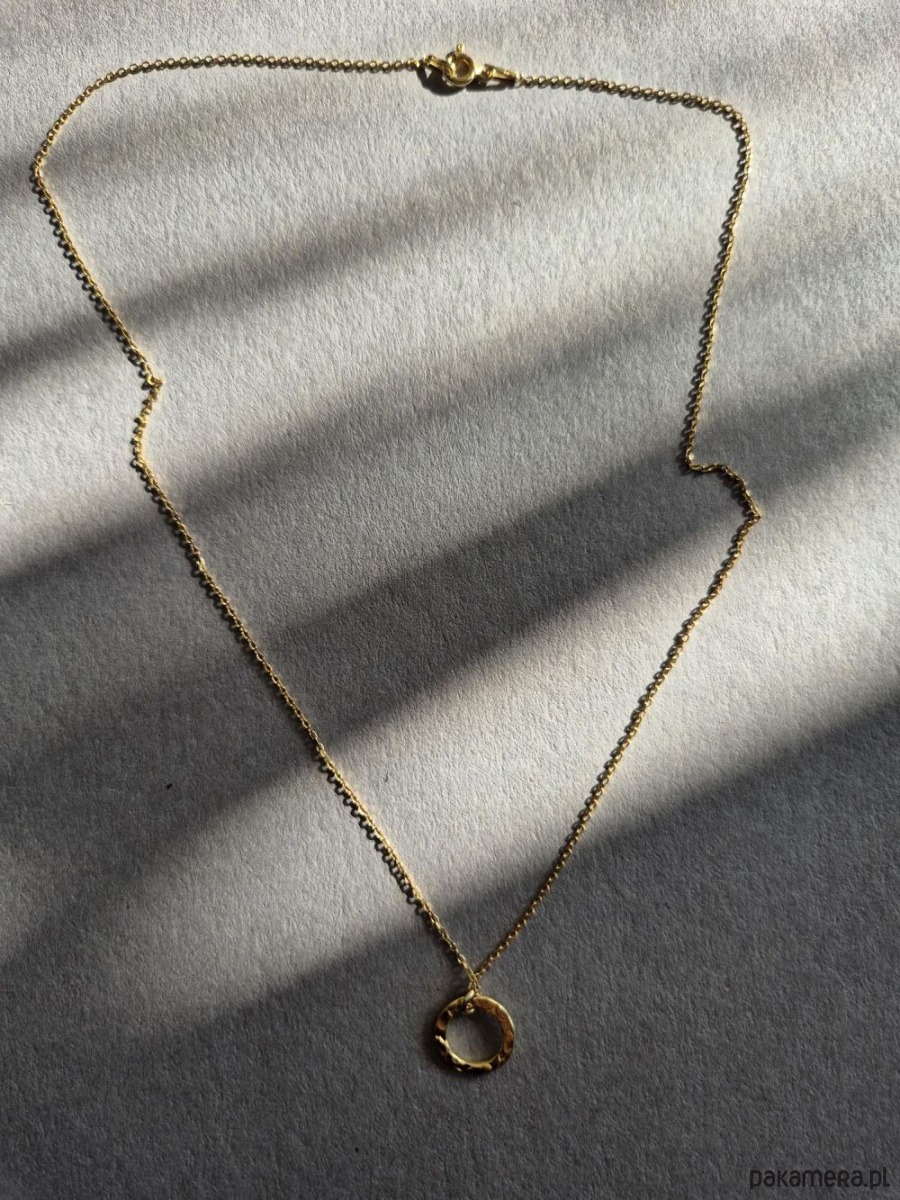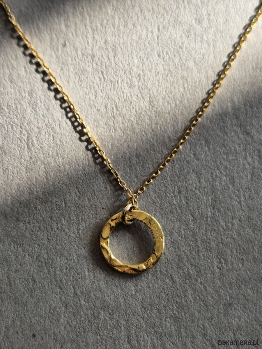 Naszyjnik potocznie zwany Celebrytką, czyli subtelnie błyszczące, młotkowane kółeczko zawieszone na delikatnym łańcuszku. Całość wykonana z pozłacanego srebra 925. Mały drobiazg, a podkręca całą stylizację, zarówno codzienną, jak i wieczorową. W innej ofercie dostępne kolczyki Dyplomatka do kompletu. Pięknie też współgra z innymi naszyjnikami z kamieni. Idealny dodatek na wiosnę!