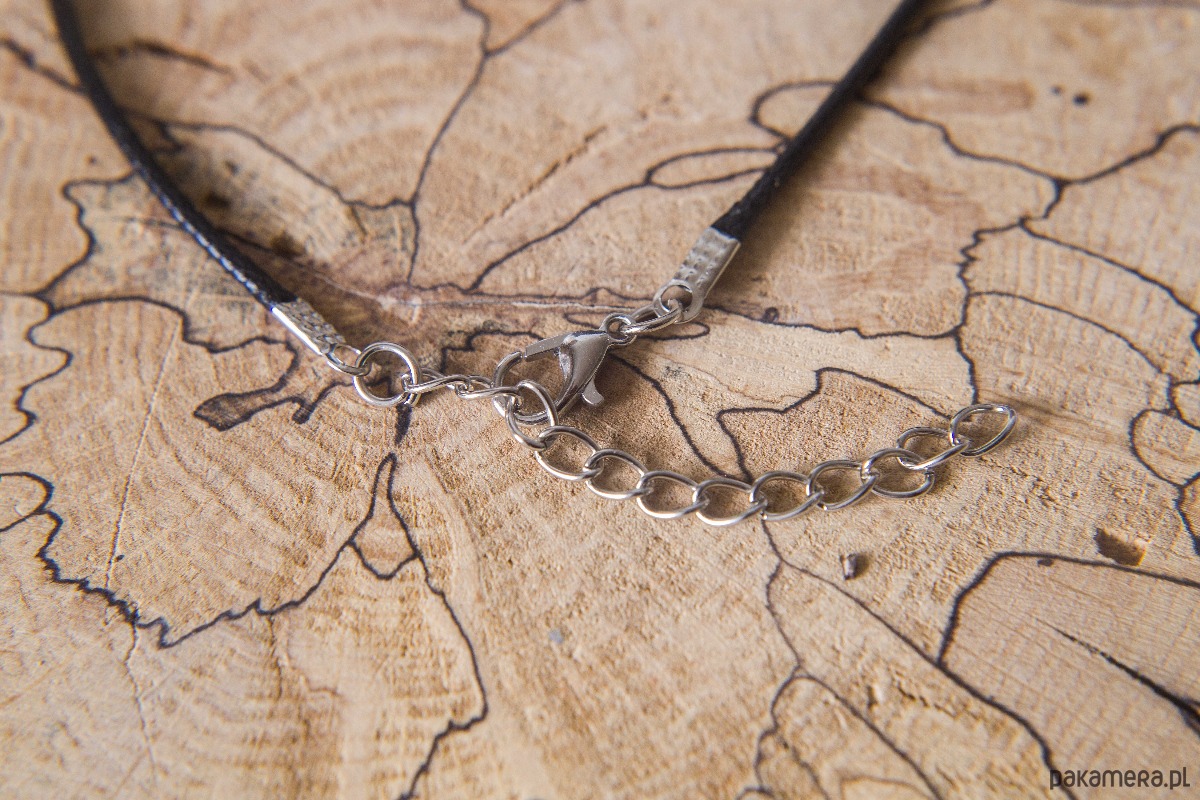 Naszyjnik na czarnym rzemieniu o długości 84 cm