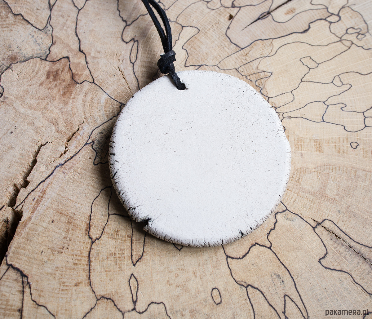Naszyjnik na czarnym rzemieniu o długości 84 cm