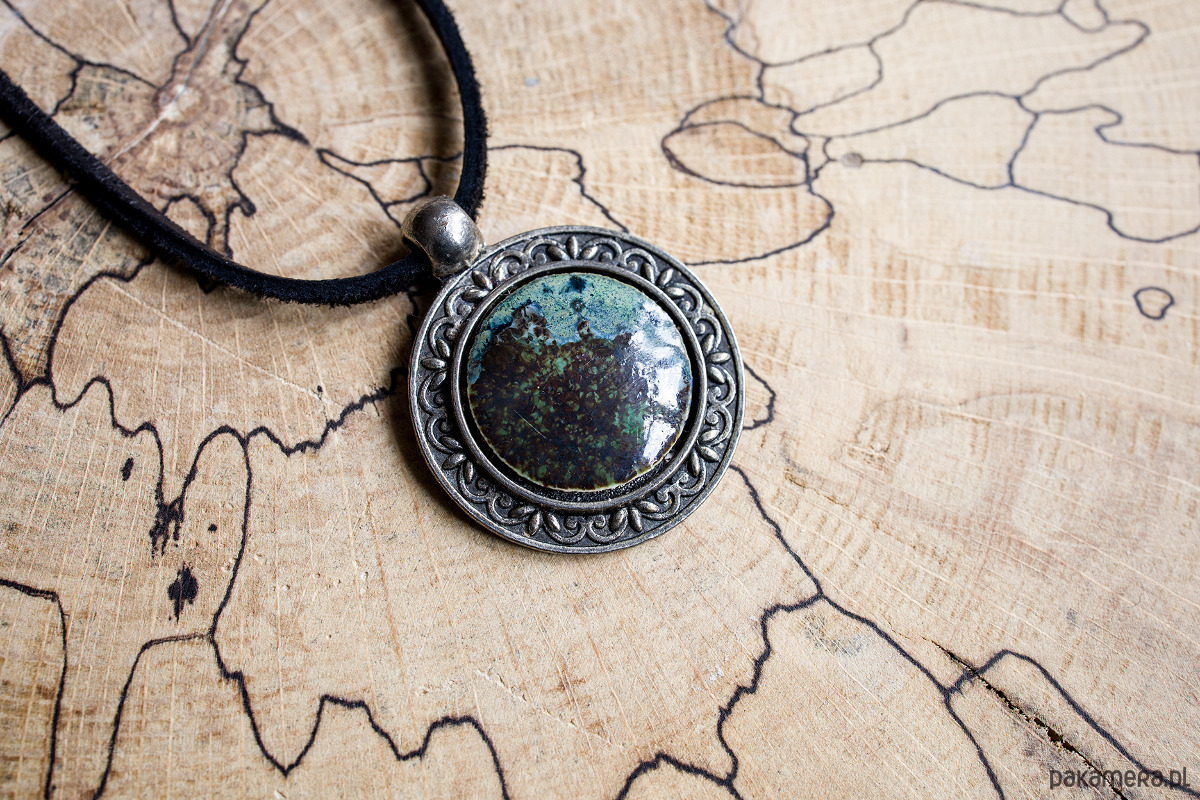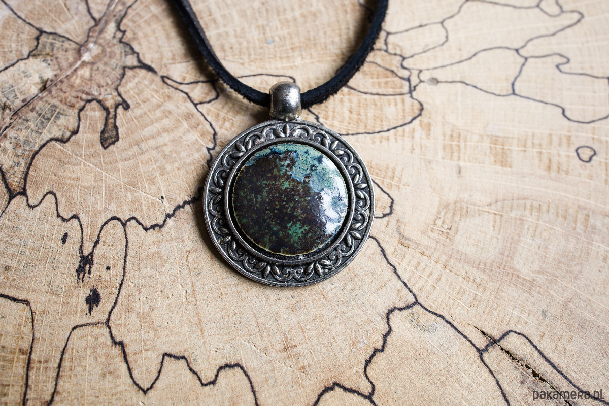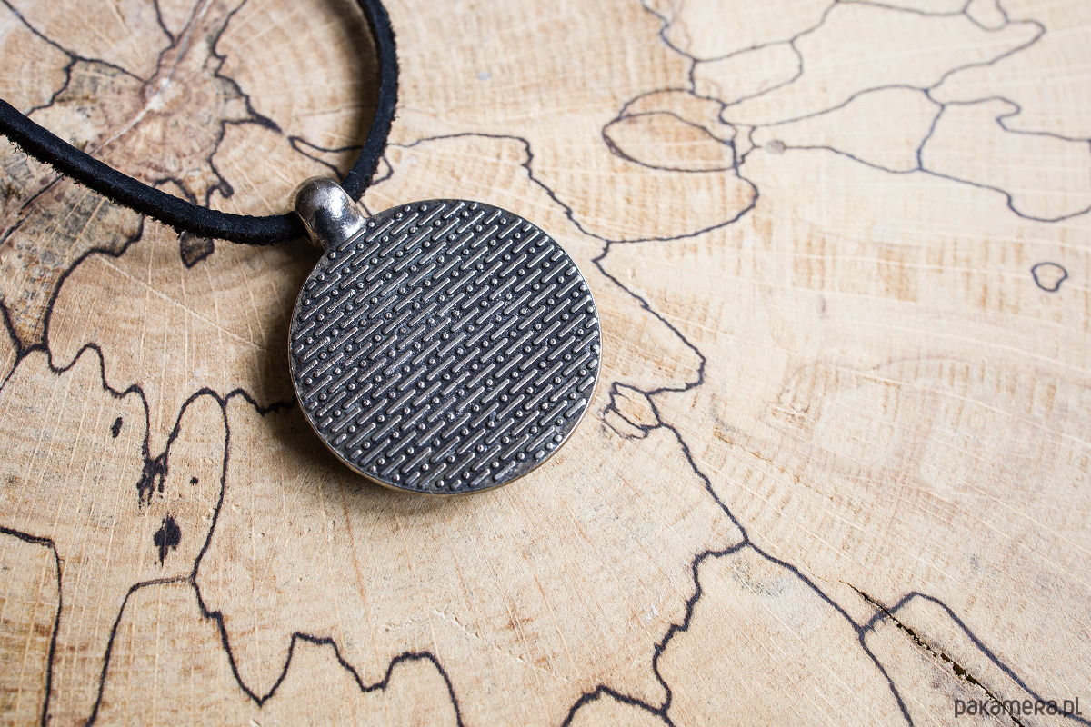 Naszyjnik na czarnym rzemieniu o długości 84 cm