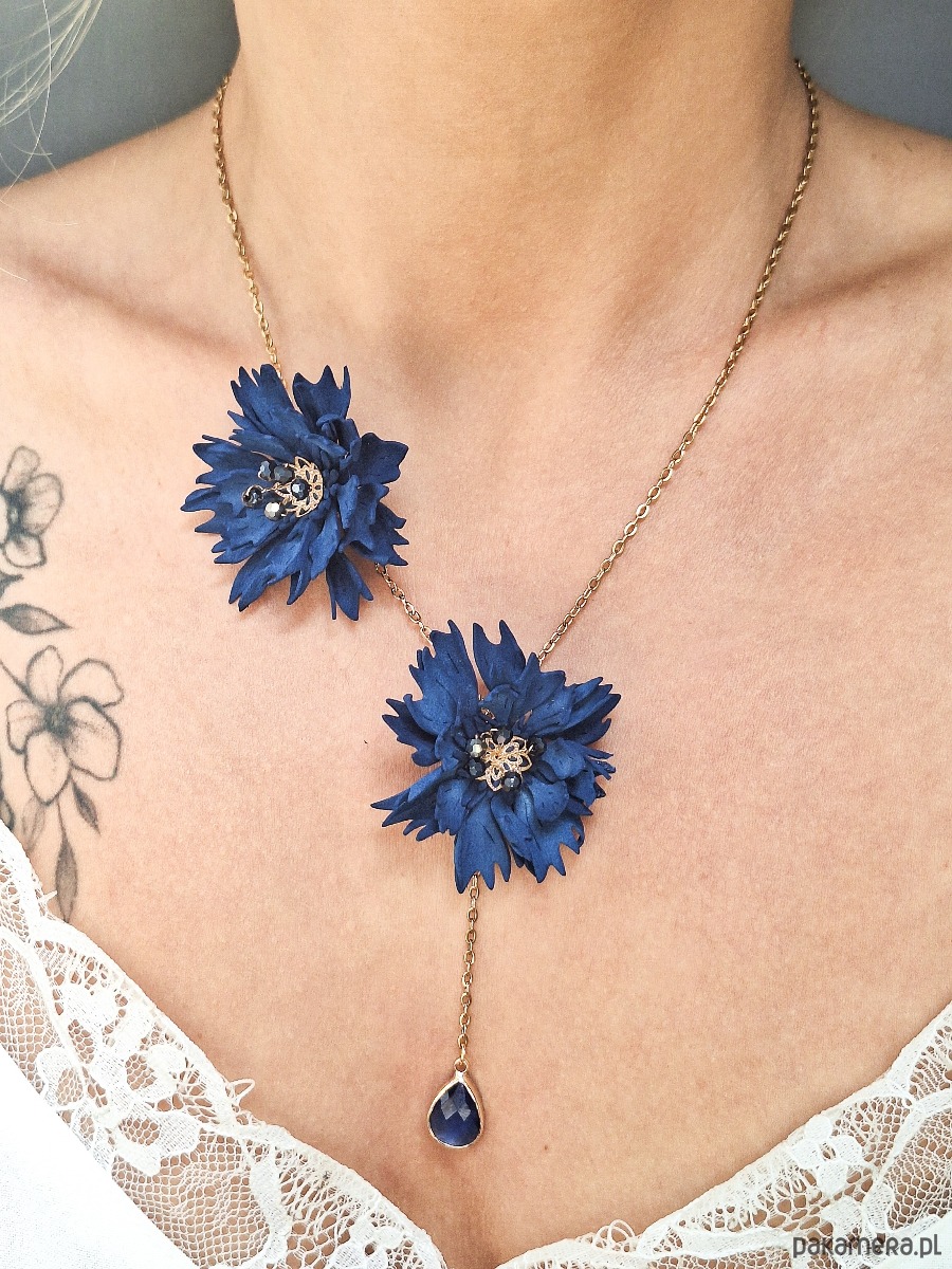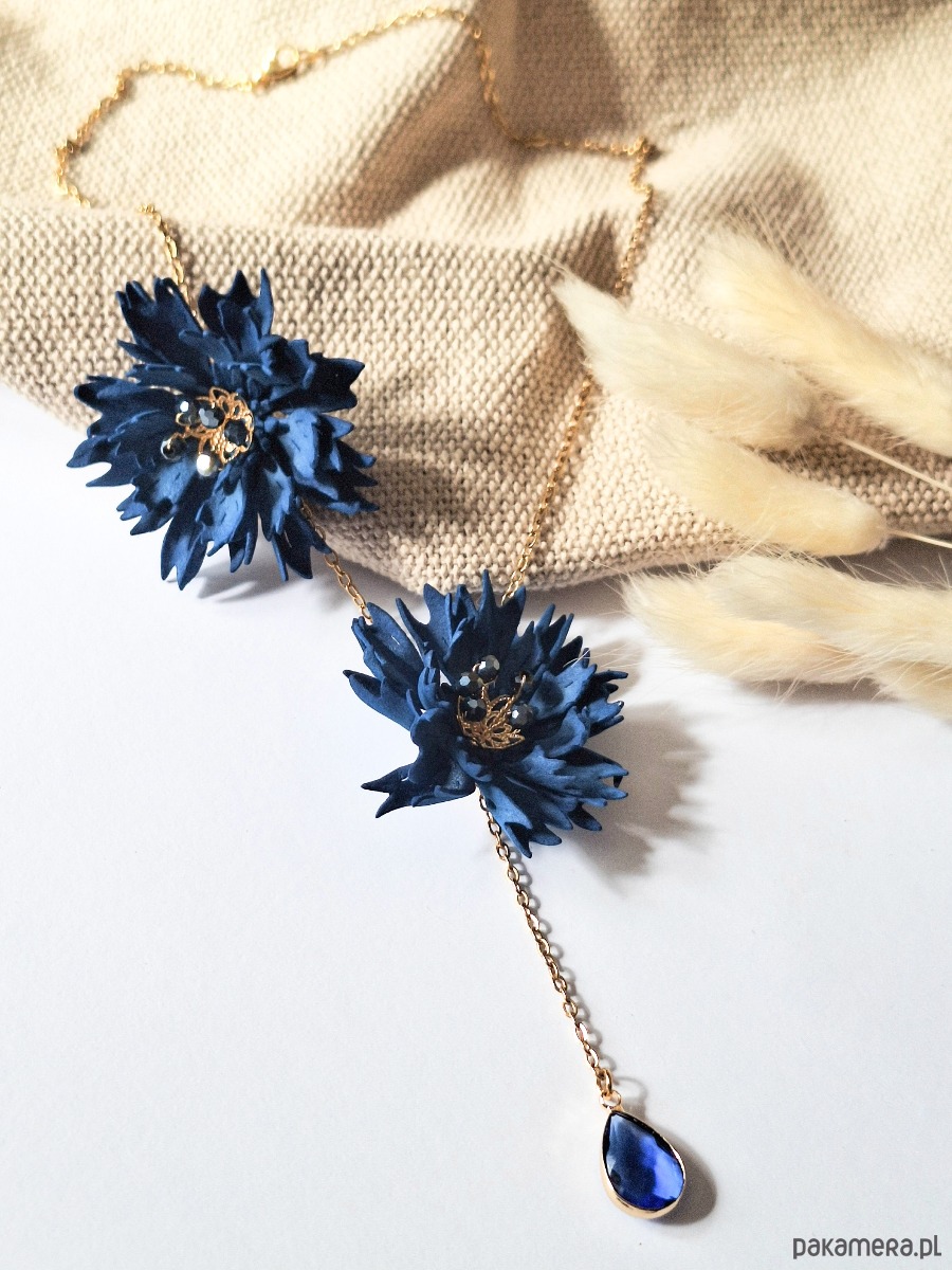 Naszyjnik chabry bławatek niebieskie kwiaty