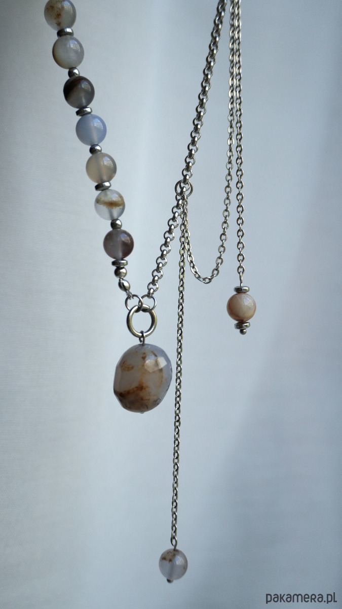 Zawieszki z chalcedonu: centralna - około 2x2 cm; na łańcuszku - około 9-10 cm
