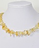 Delikatny i bardzo subtelny naszyjnik z nieregularnych kamieni cytrynu. Kształt i delikatna barwa sprawiają wspaniałe wrażenie. Światło załamuje się i odbija mnogością barw. Świetnie pasuje do letnich ubiorów.