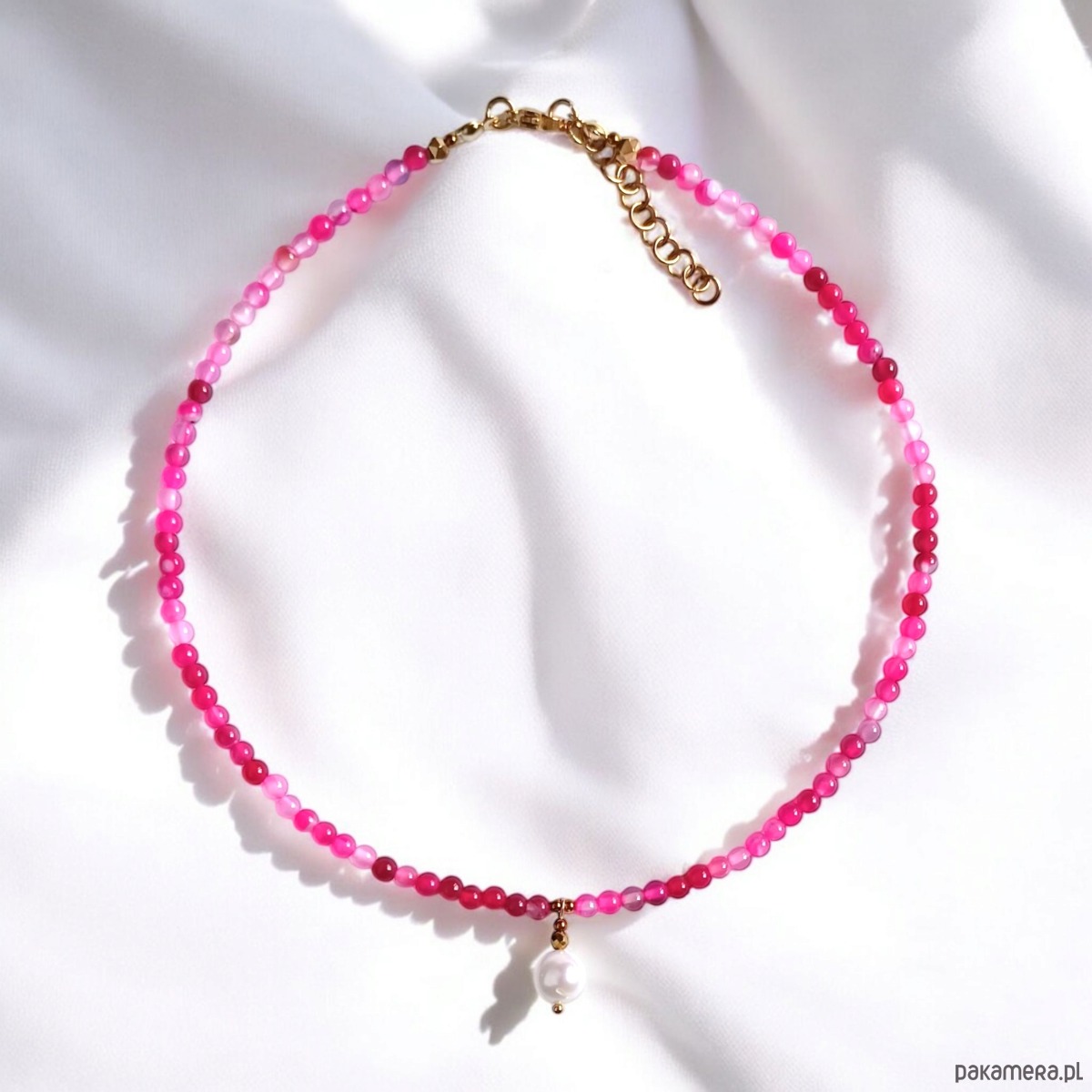Naszyjnik : choker : fuchsia & pearl collection : agat i perła