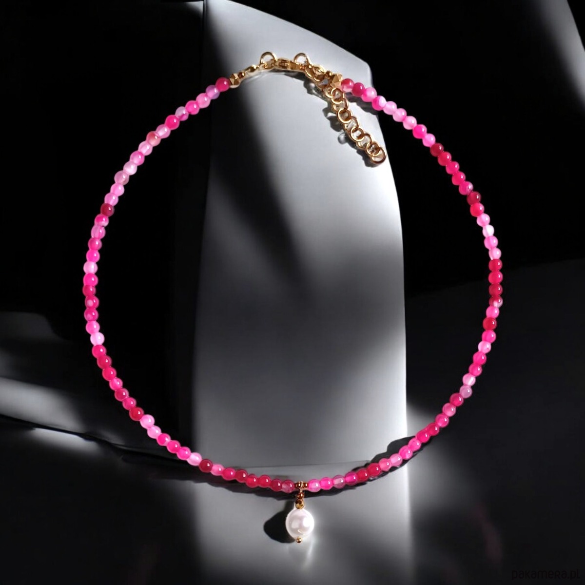 Naszyjnik : choker : fuchsia & pearl collection : agat i perła