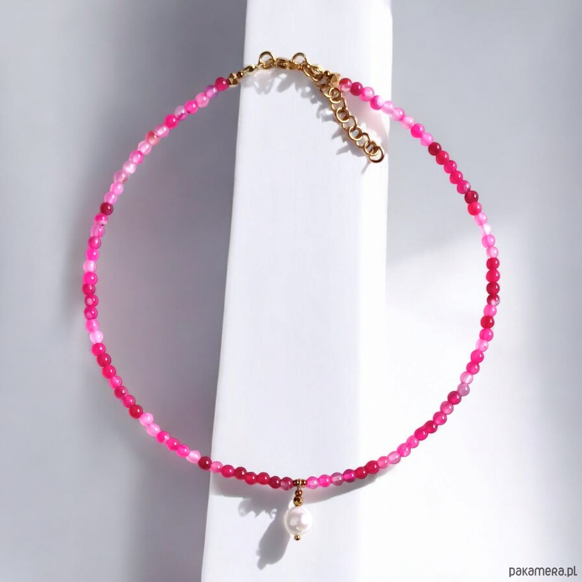 Naszyjnik : choker : fuchsia & pearl collection : agat i perła