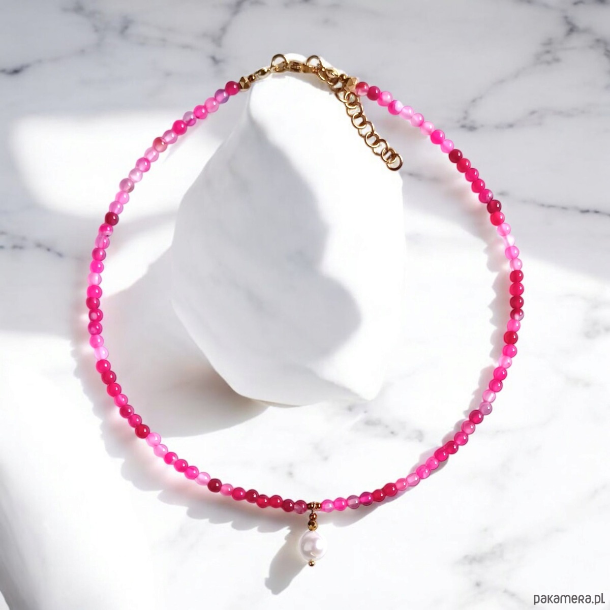 Naszyjnik : choker : fuchsia & pearl collection : agat i perła