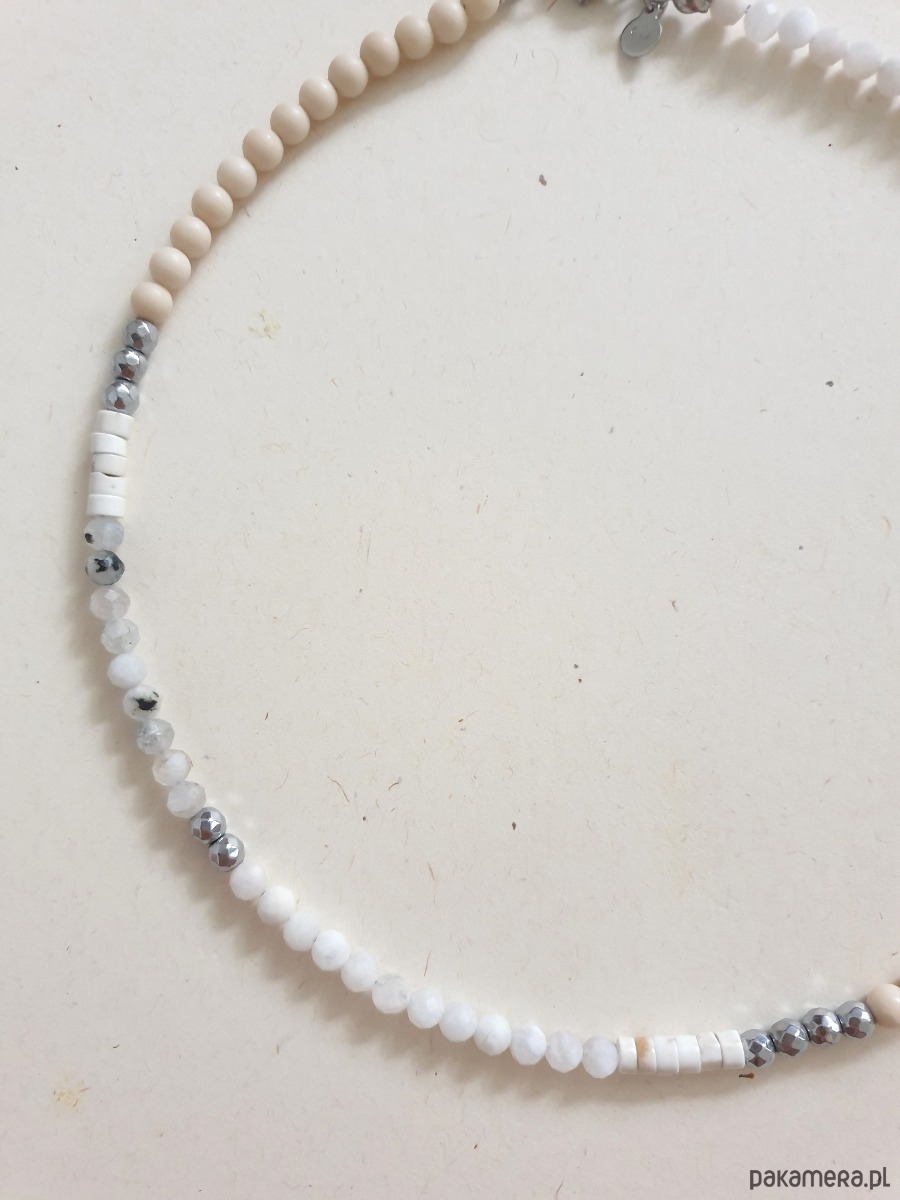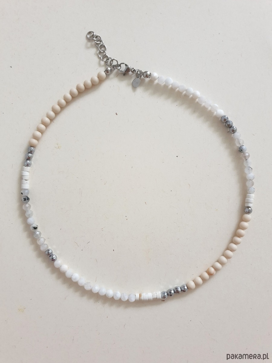 Naszyjnik choker NEO kamień księżycowy, kamień rzeczny, howlit