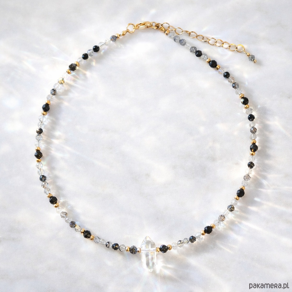 Naszyjnik "Protection" powstał z dwóch najsilniejszych kamieni ochronnych w królestwie minerałów - kryształu górskiego oraz czarnego turmalinu.