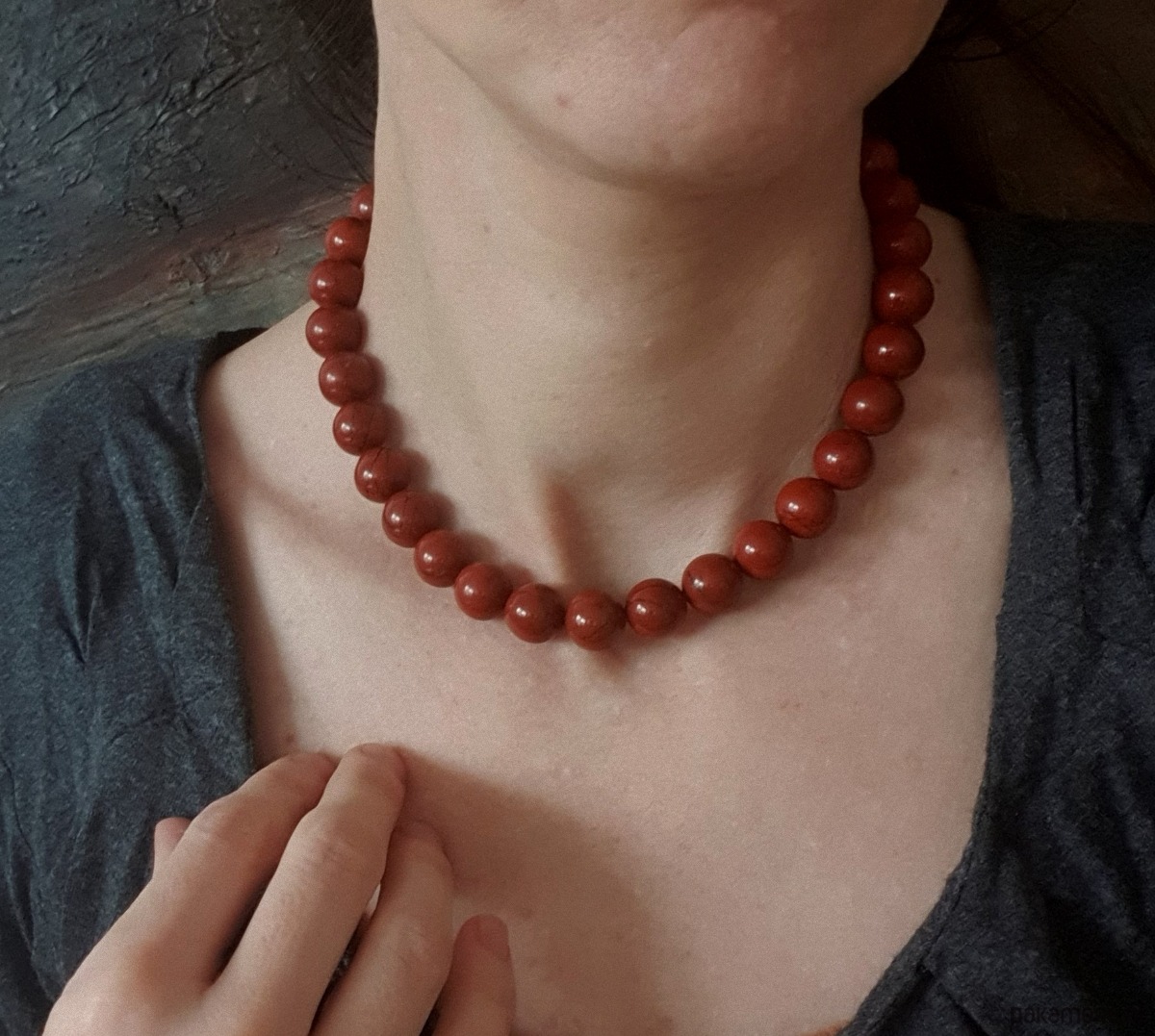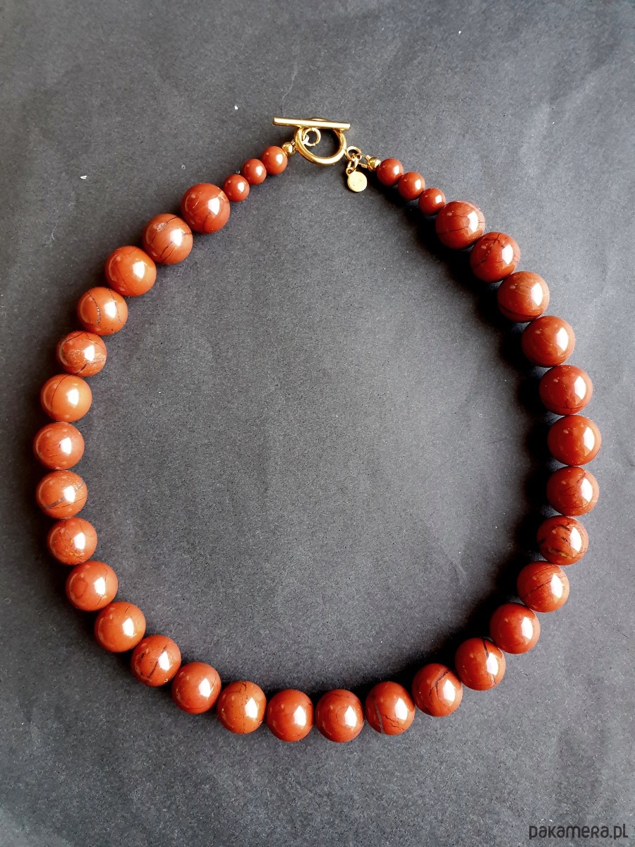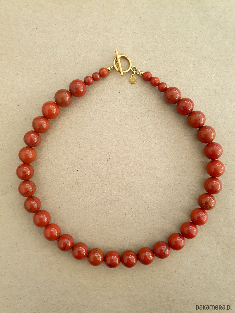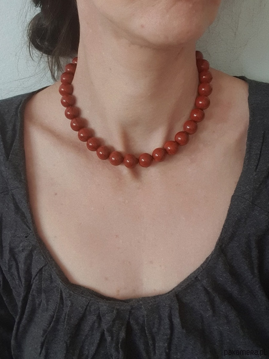 Naszyjnik choker ROOTS jaspis czerwony kulki 12 mm