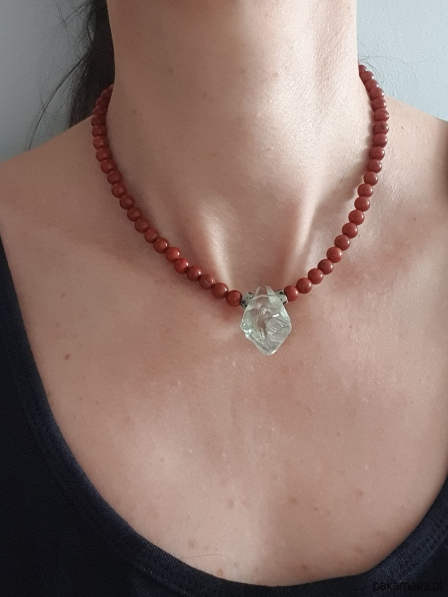 Naszyjnik choker ROOTS jaspis czerwony, prasiolit, jaspis dalmatyński