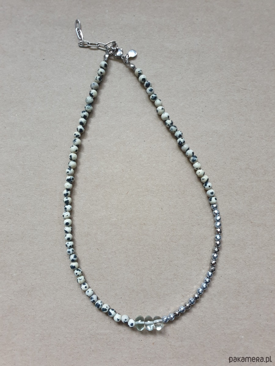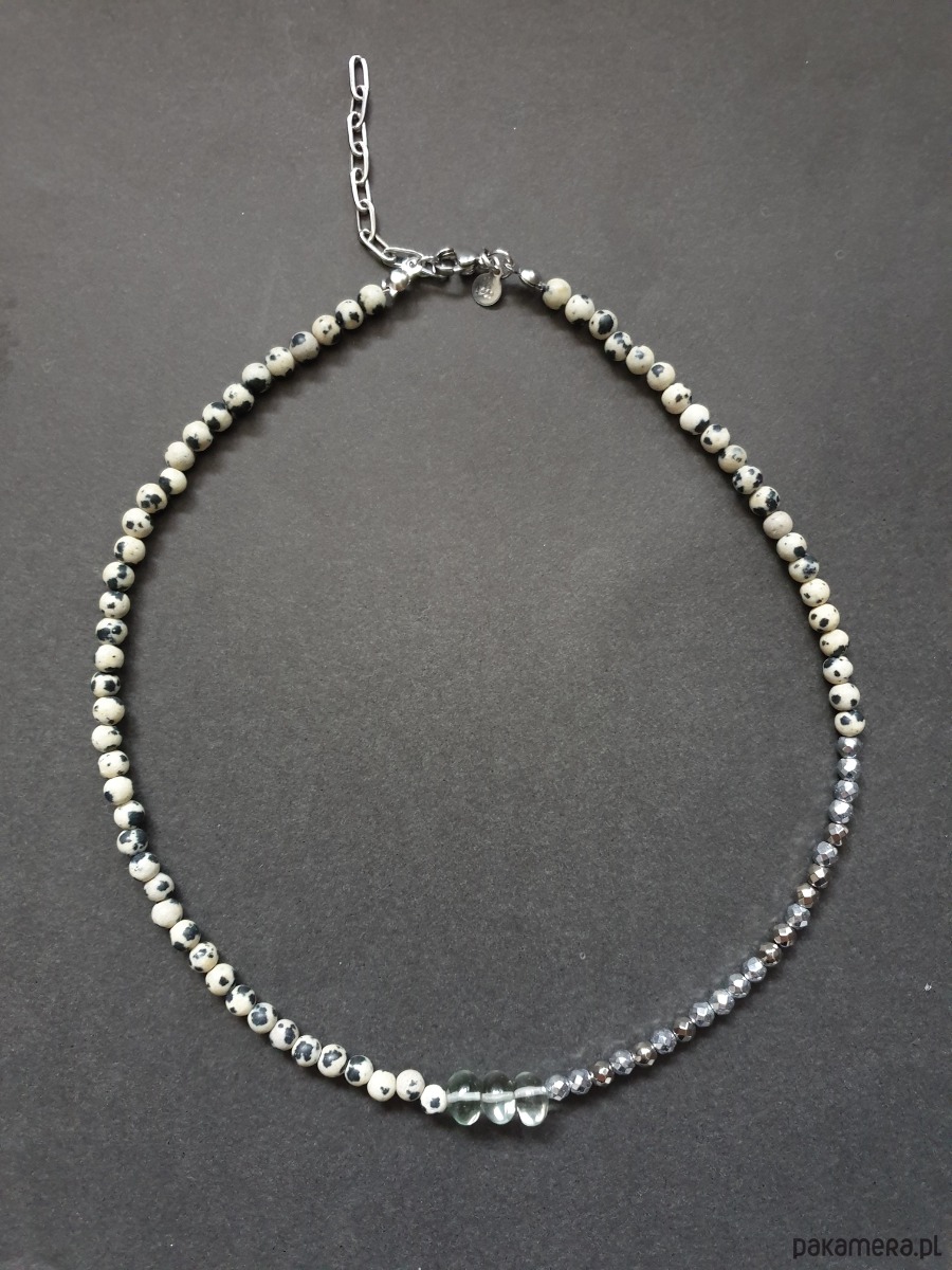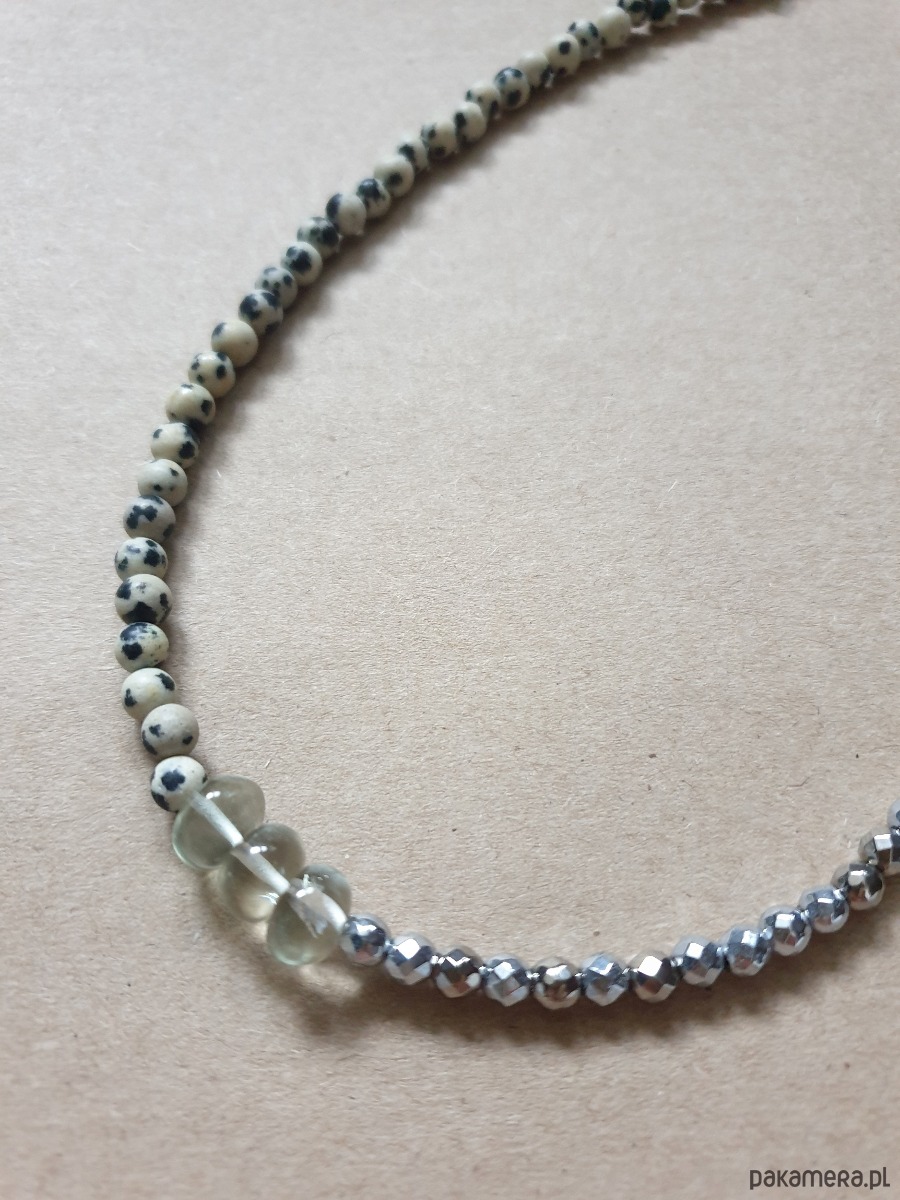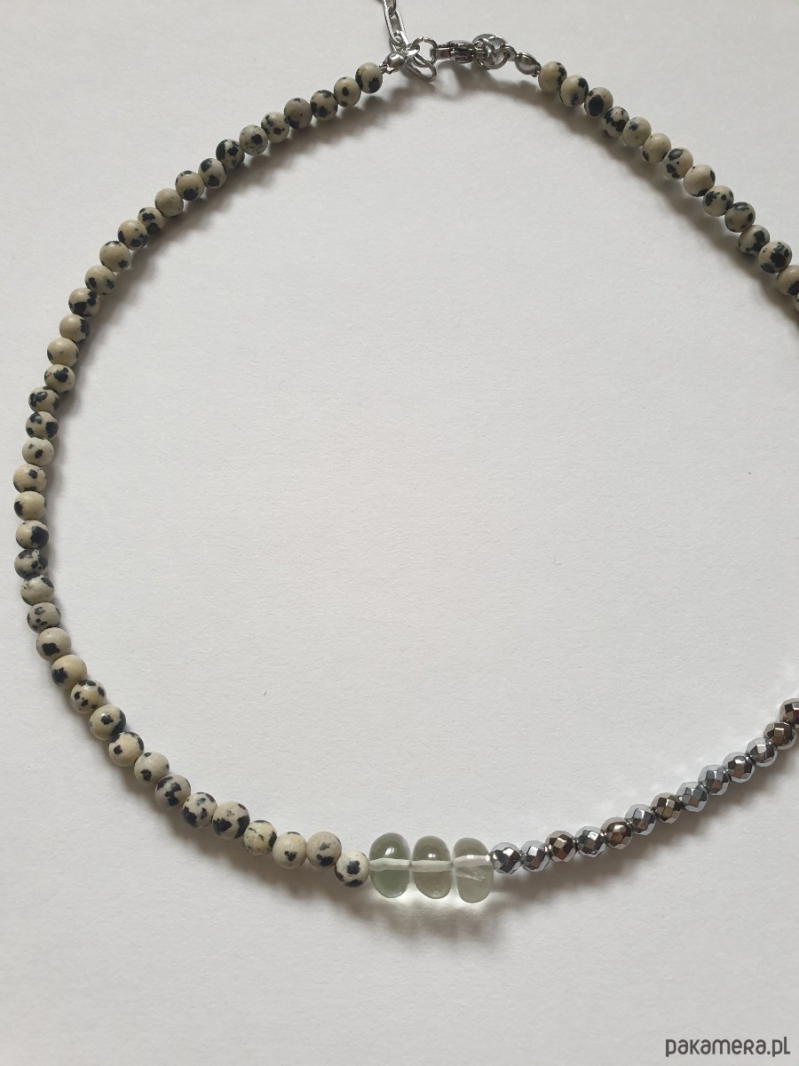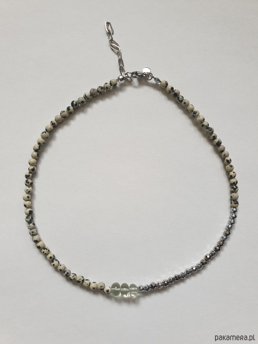Naszyjnik choker ROOTS jaspis dalmatyński, prasiolit, hematyt