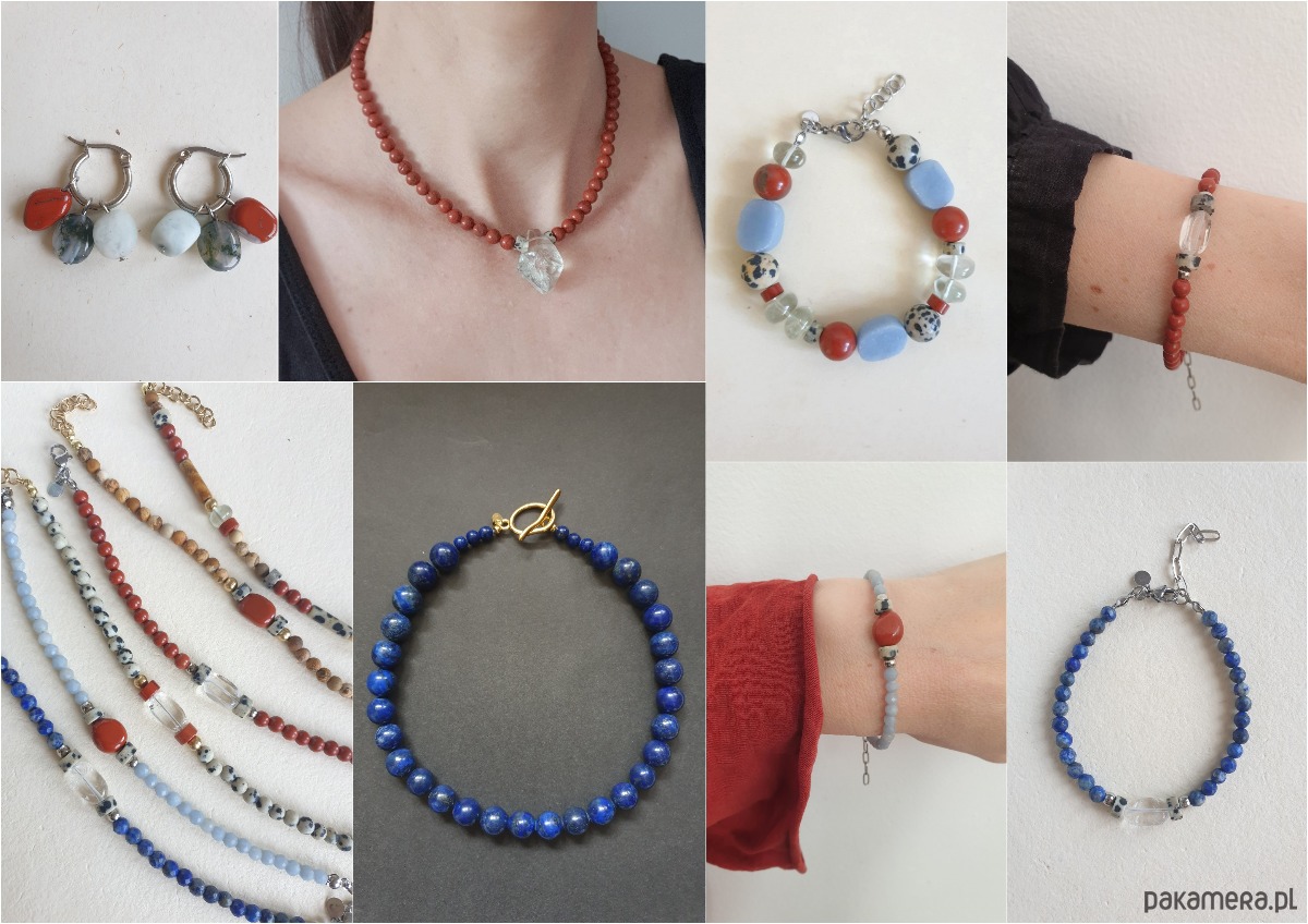 Stal szlachetna (chirurgiczna) jest hipoalergiczna, nie zmienia koloru, bardzo wytrzymała. Swoją biżuterię ze stali i kamieni naturalnych możesz co jakiś czas przemyć w letniej wodzie z delikatnym mydłem i wysuszyć (tą z elementami z lnianego sznurka także)