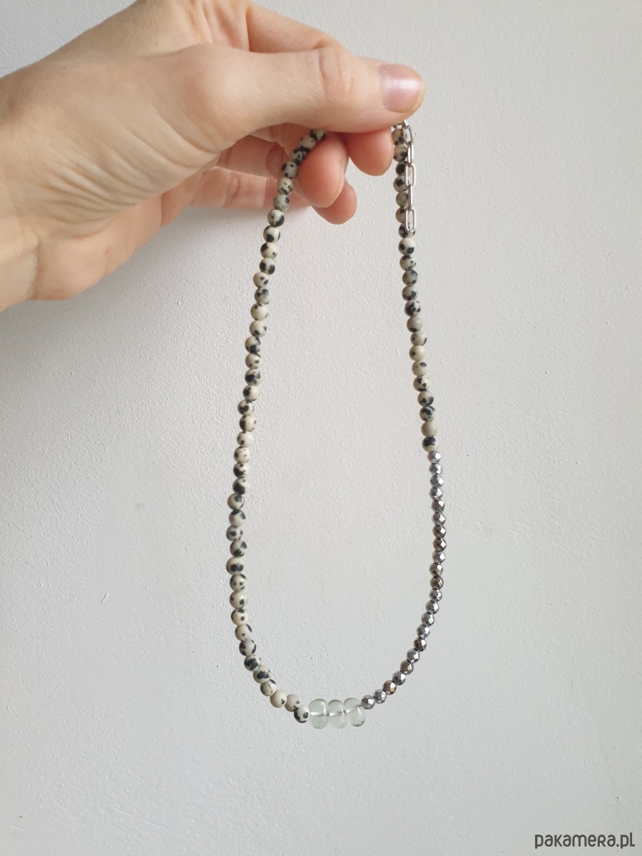 Naszyjnik choker ROOTS jaspis dalmatyński, prasiolit, hematyt