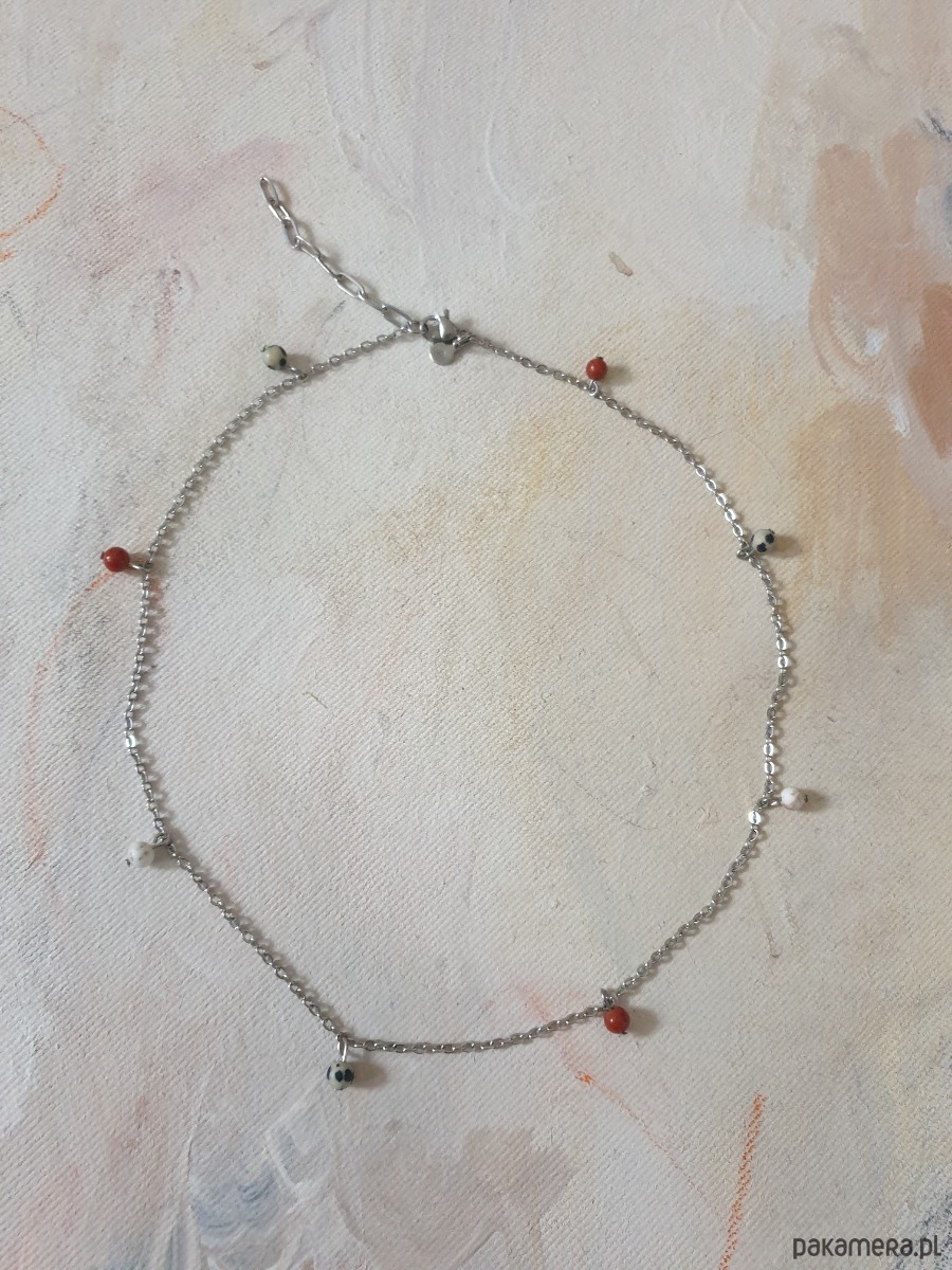 Naszyjnik choker ROOTS łańcuszek jaspis czerwony, jaspis dalmatyński, howlit