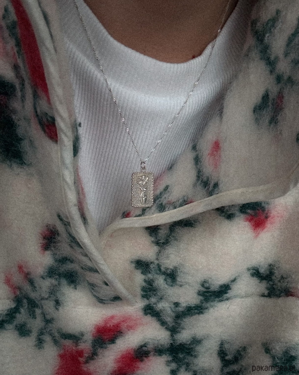 Z drugiej strony medalika została stworzona wyjątkowa faktura. Medalik jest dwustronny.