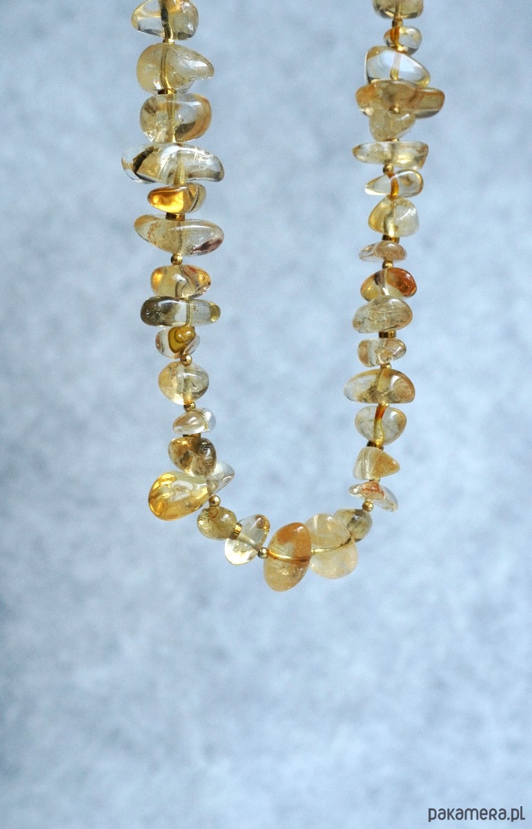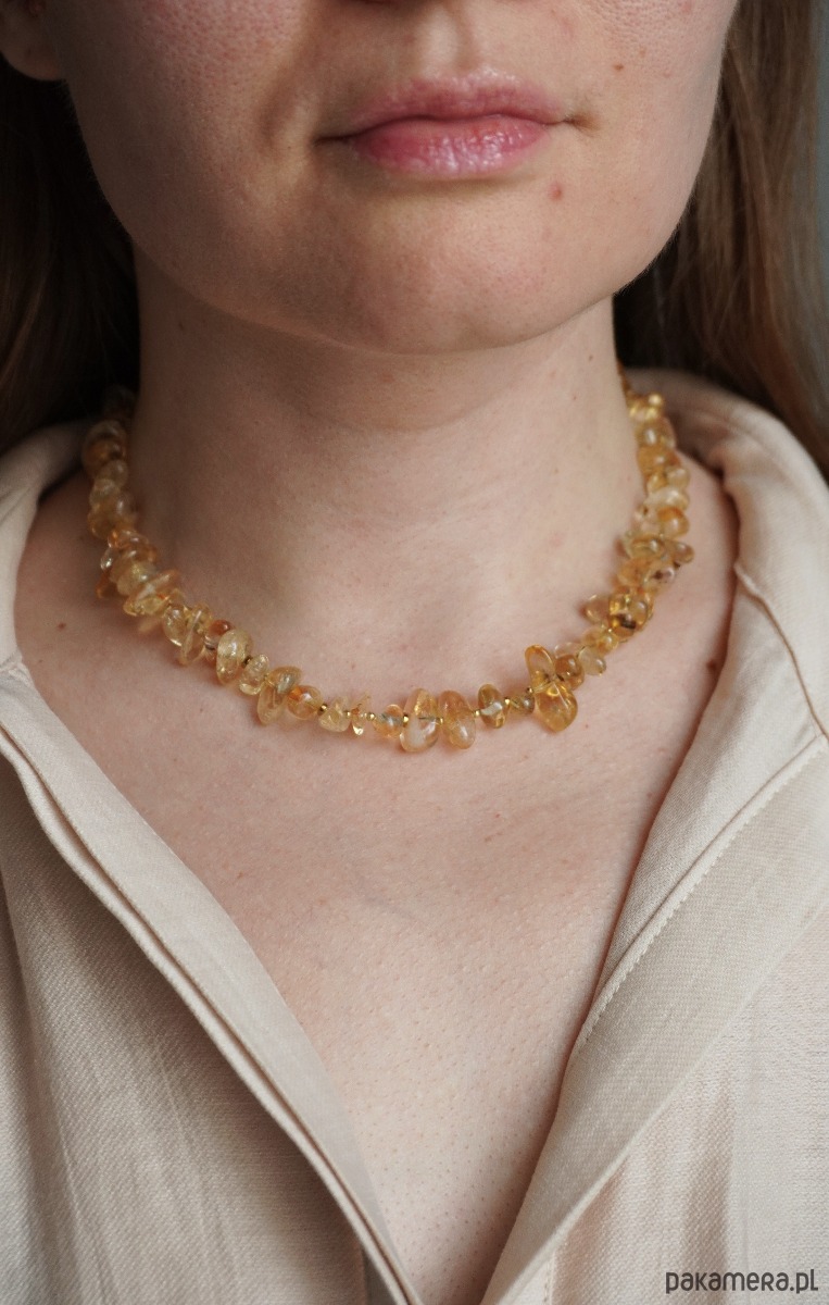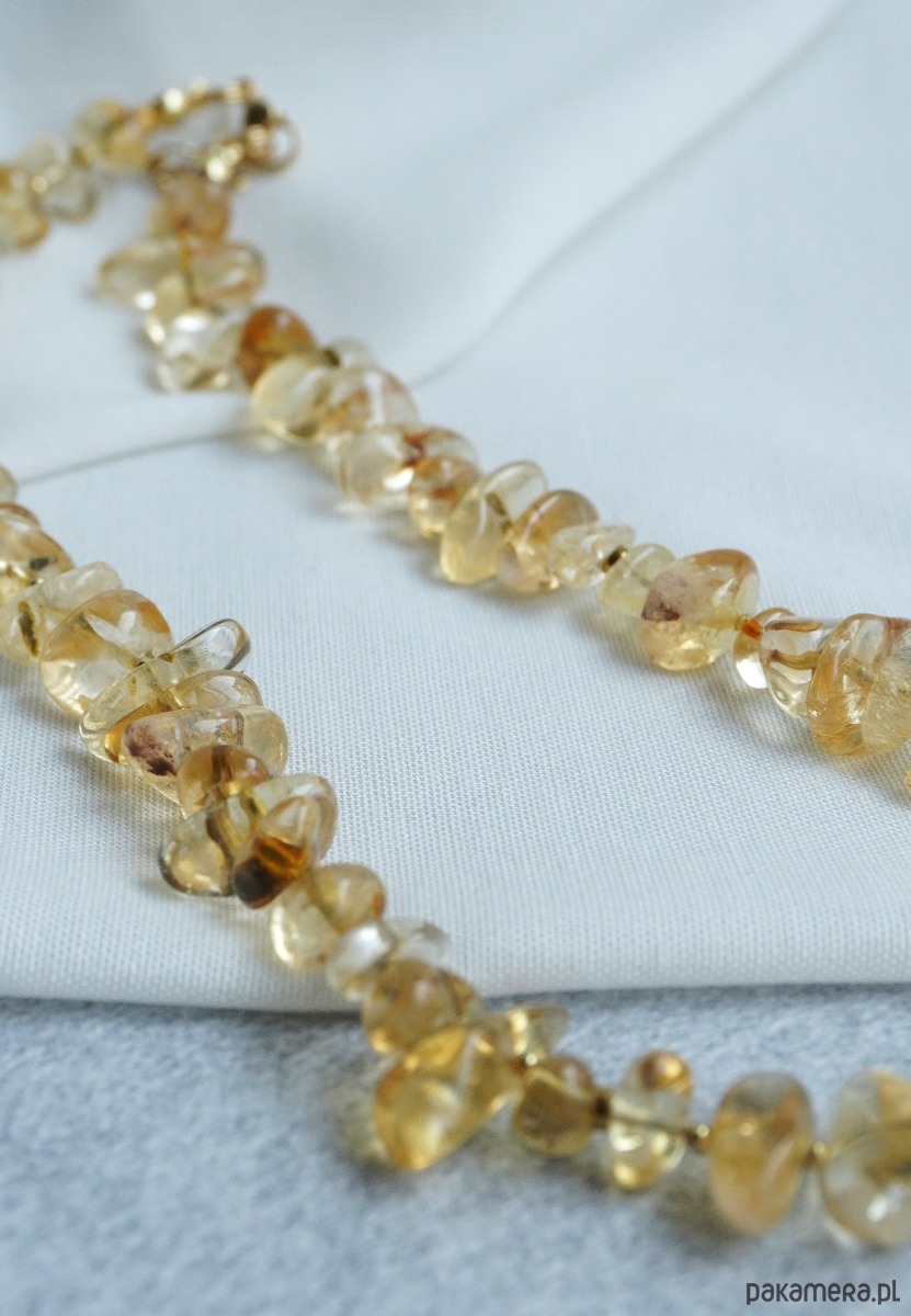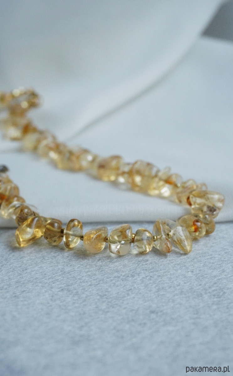 Ten wyjątkowy naszyjnik wykonany jest z naturalnego Cytrynu – kamienia promieni słonecznych i życiowej energii. Delikatne, przejrzyste kryształy mienią się ciepłymi, złocistymi odcieniami, tworząc wrażenie lekkości i wewnętrznego blasku.