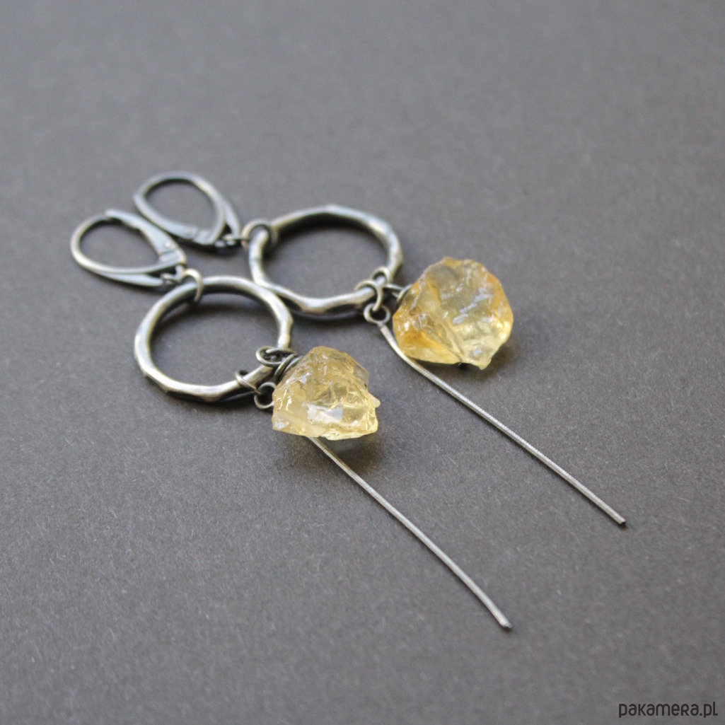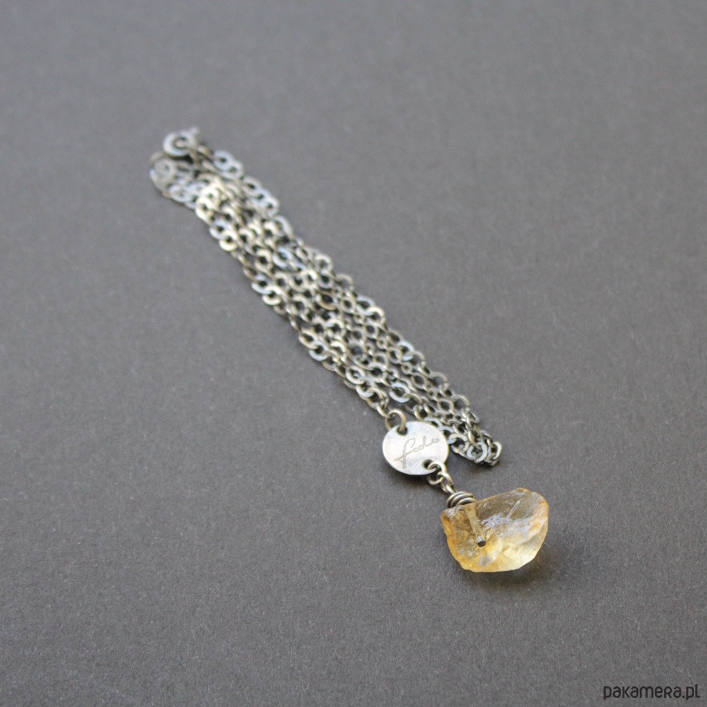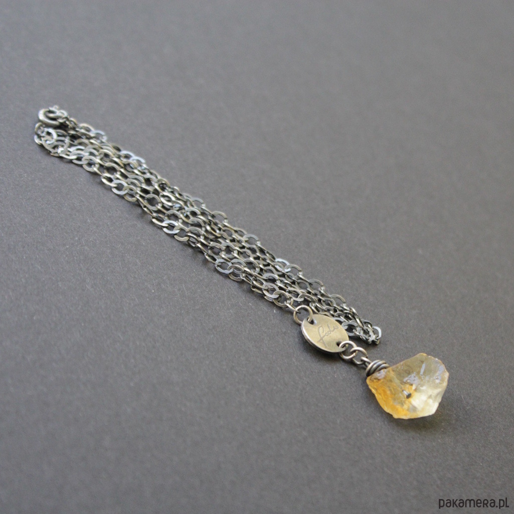 Naszyjnik wykonany został z oksydowanego srebra próby 925 oraz przepięknej surowej bryłki cytrynu o wielkości 1,5 cm.
