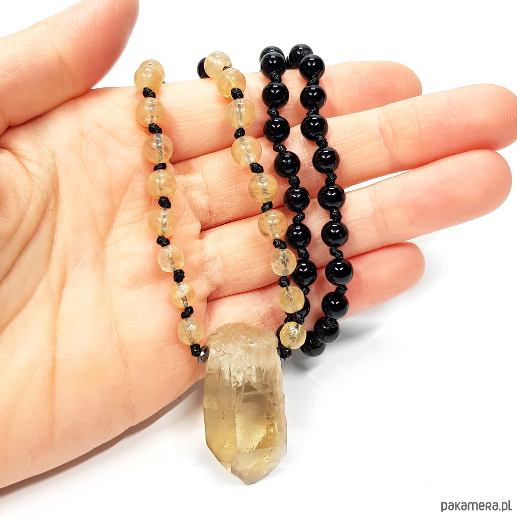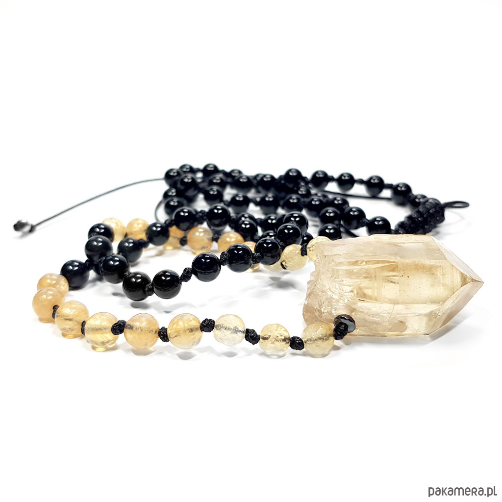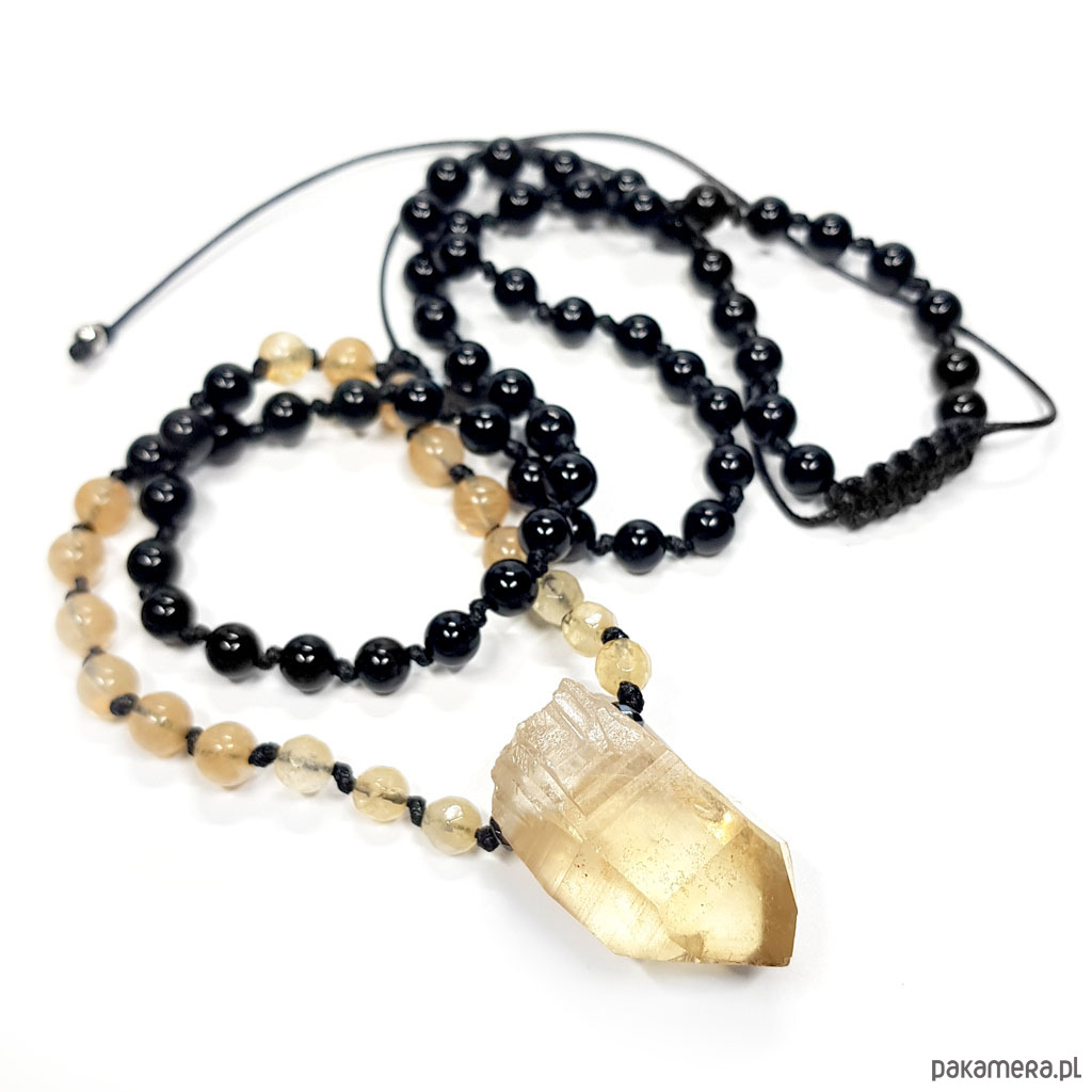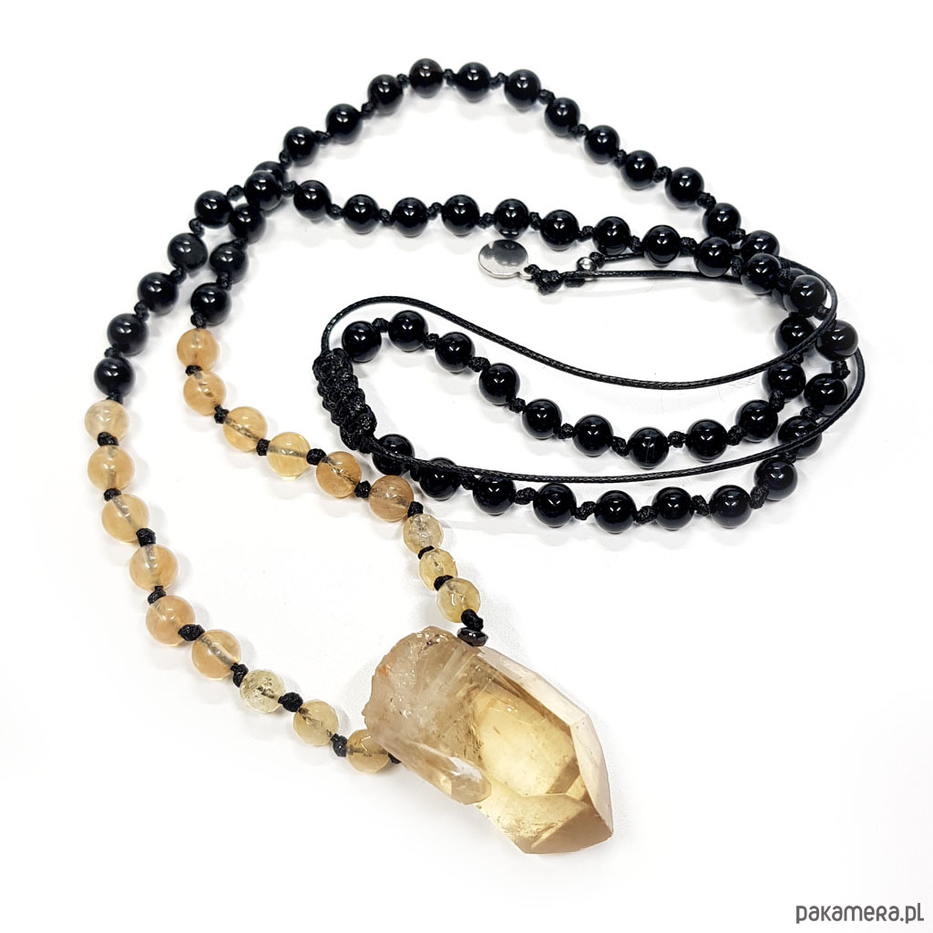 Naszyjnik cytryn, obsydian, kwarc tygrysi, agat i hematyt