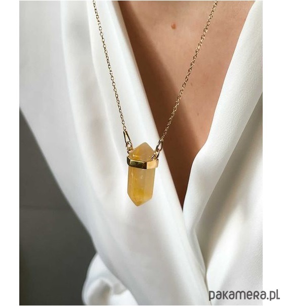 Naszyjnik z cytrynem w oprawie. Każda sztuka została wykonana ręcznie. Kryształy zostały okute w srebro próby 925, a następnie pozłacane.