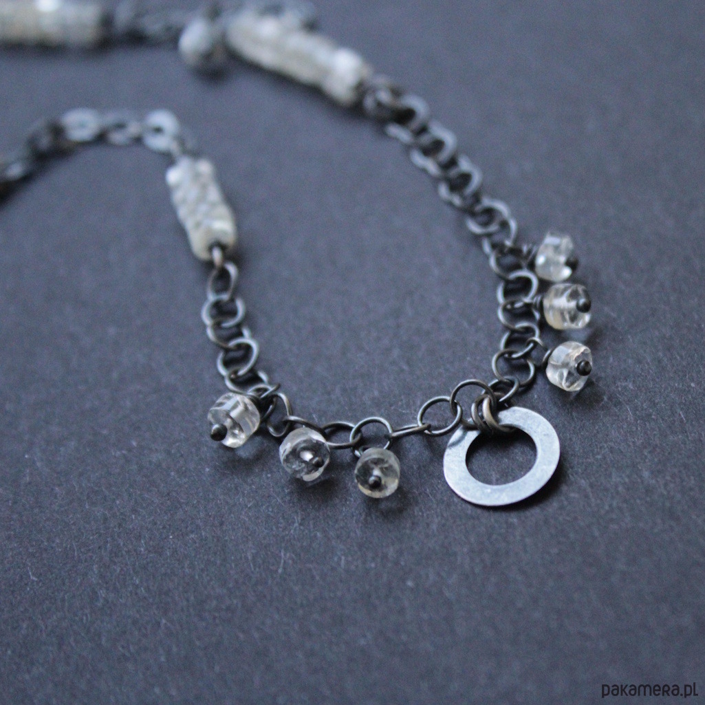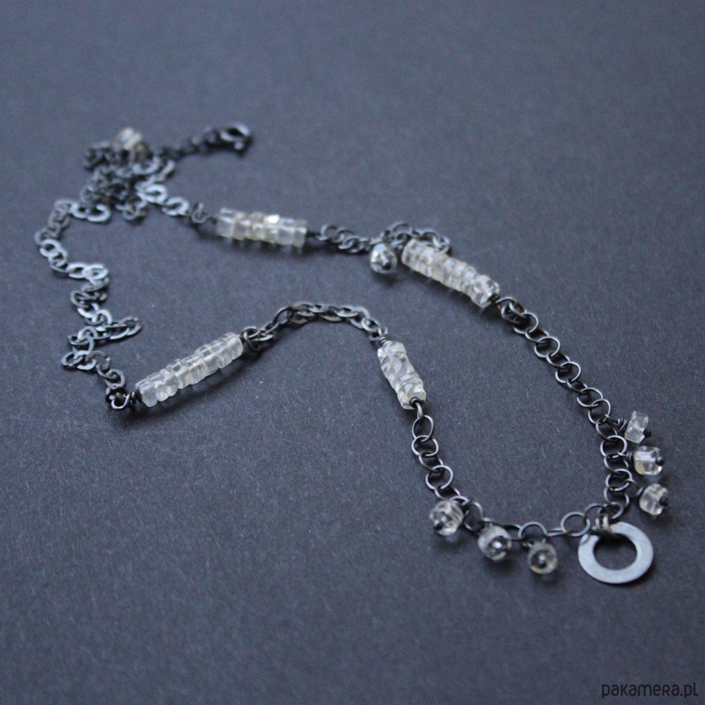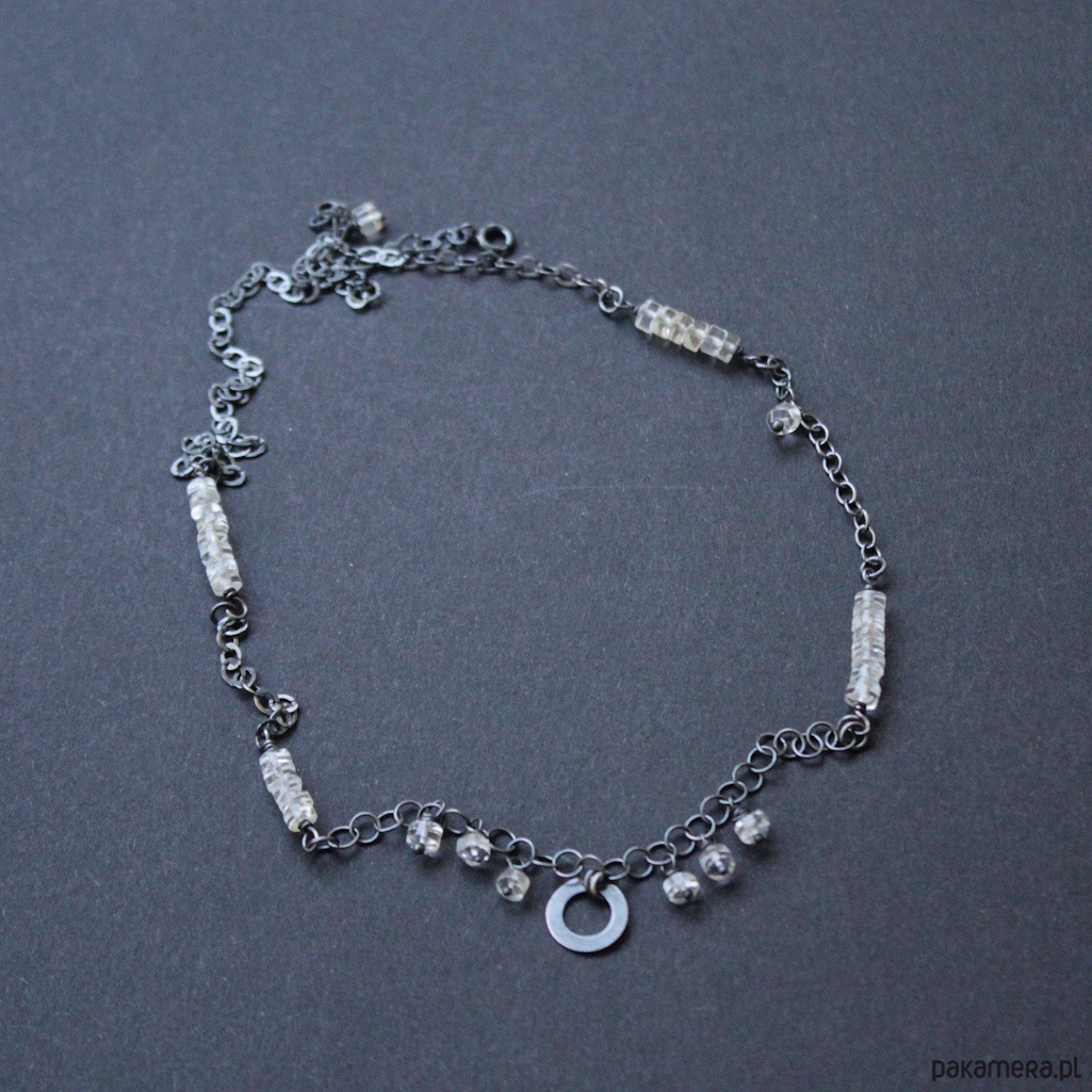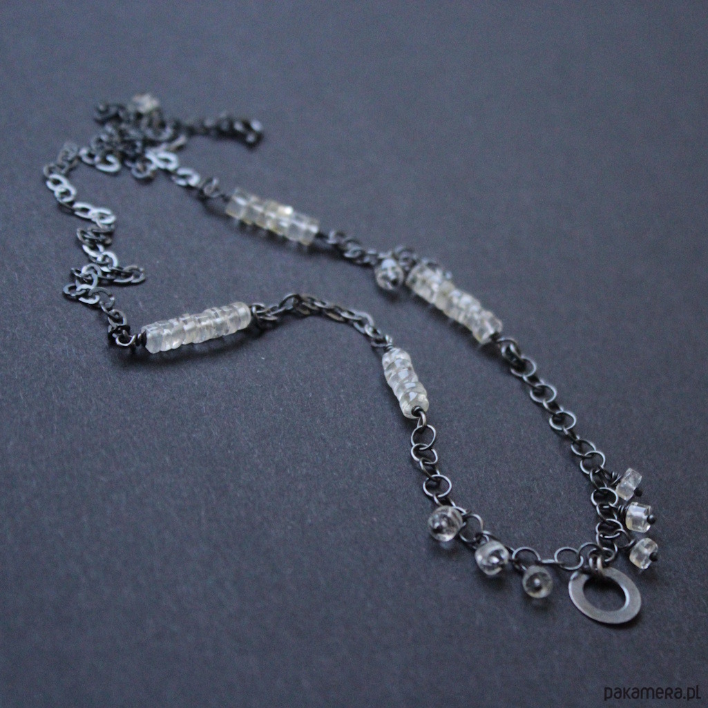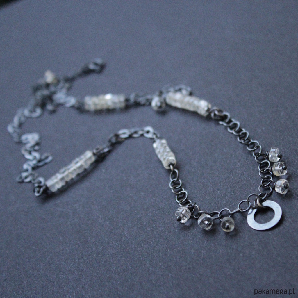 Unikatowy naszyjnik wykonany został z oksydowanego srebra próby 925.
