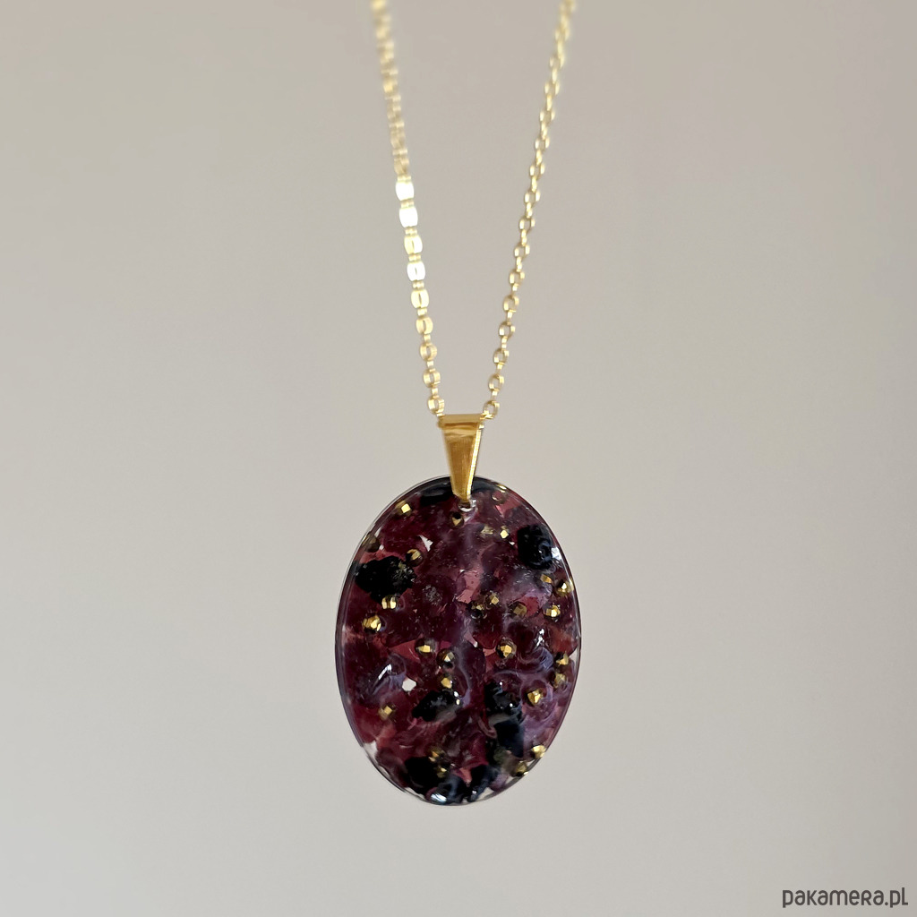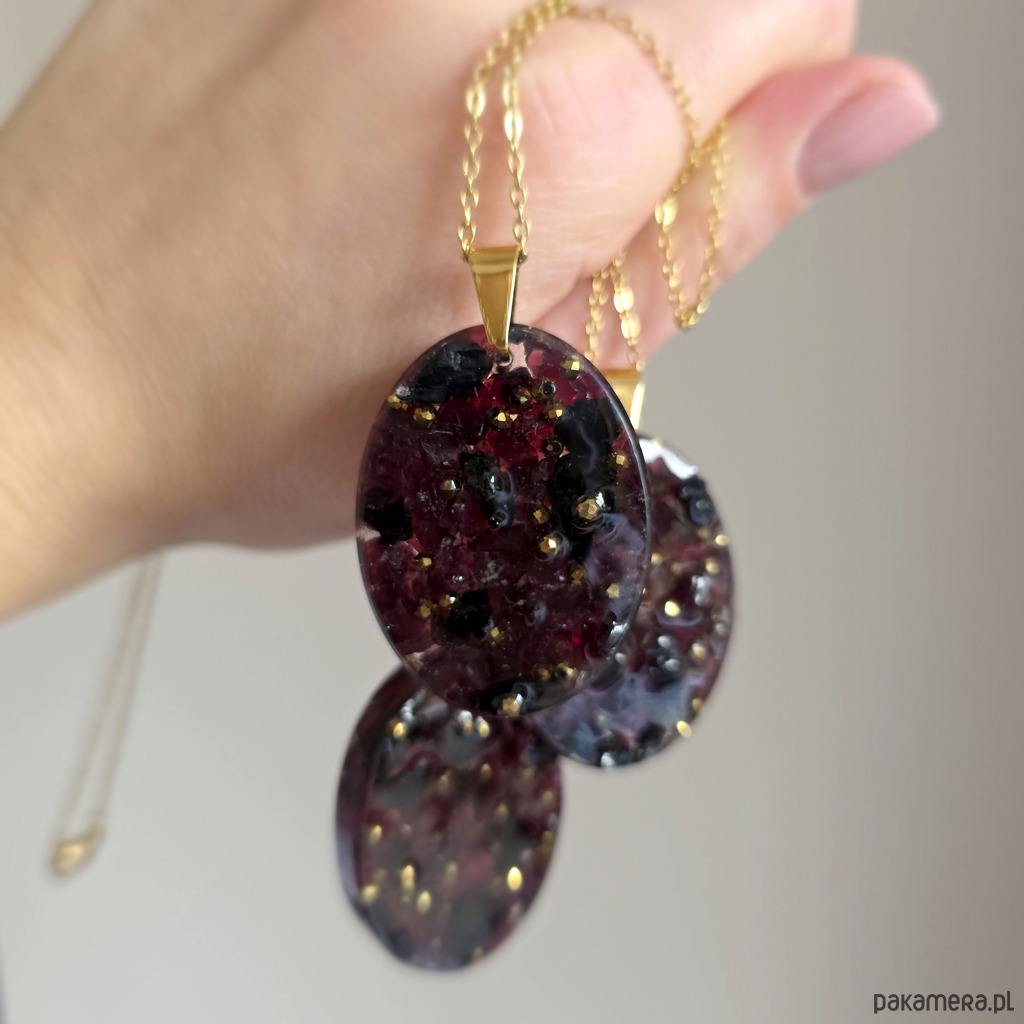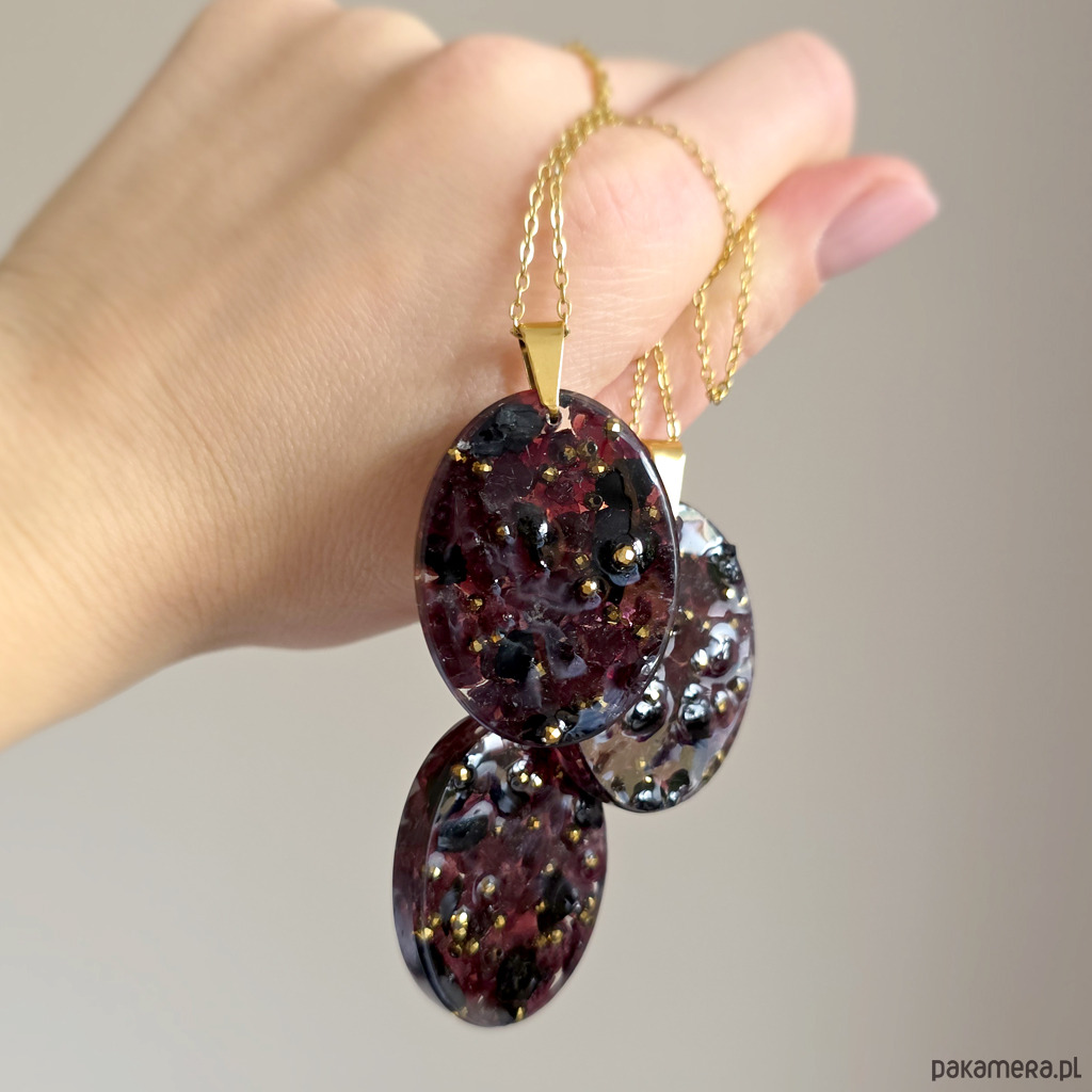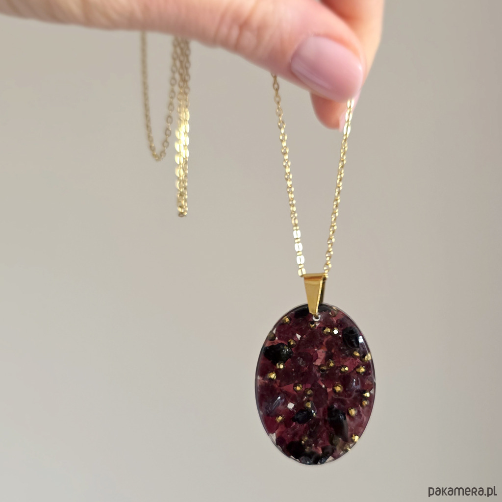 Naszyjnik czarny turmalin, granat i hematyt owal na łańcuszku