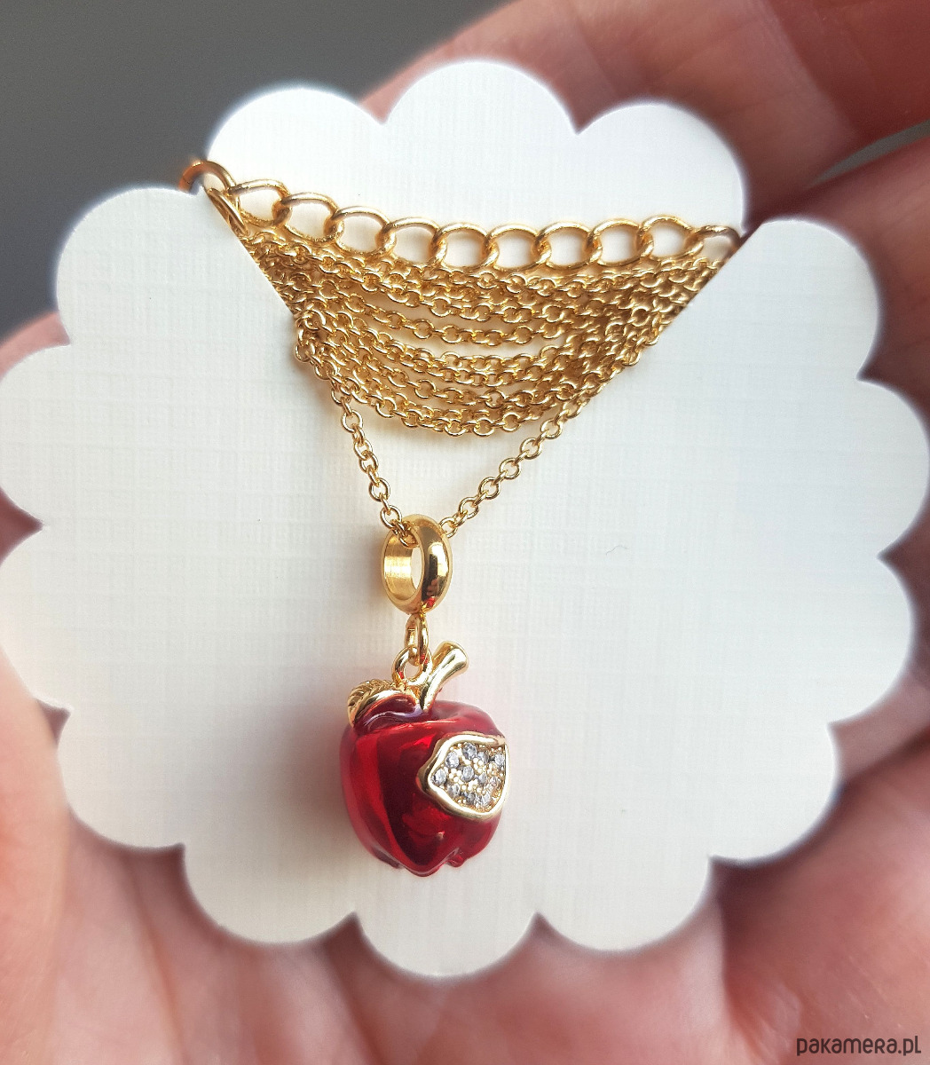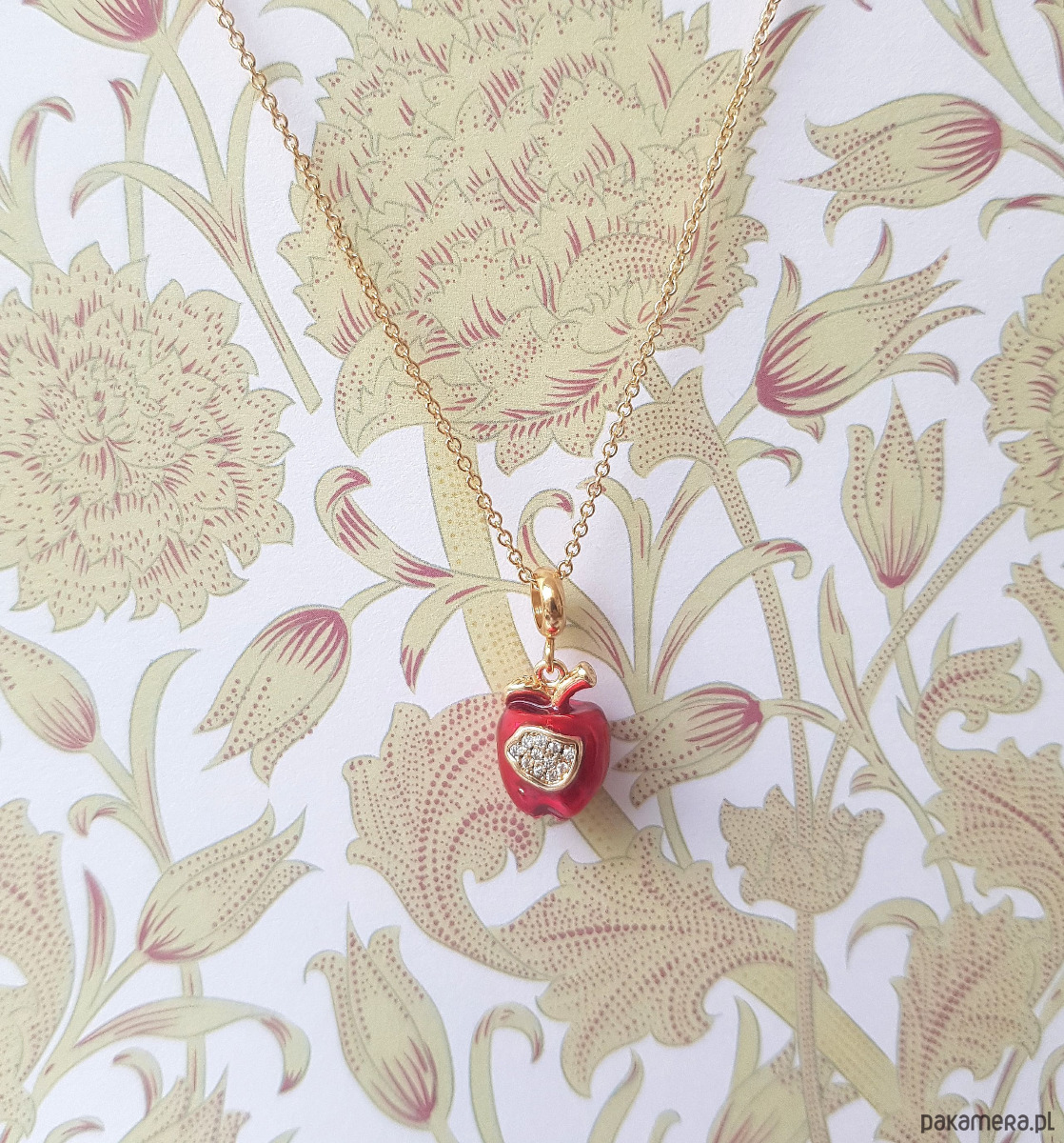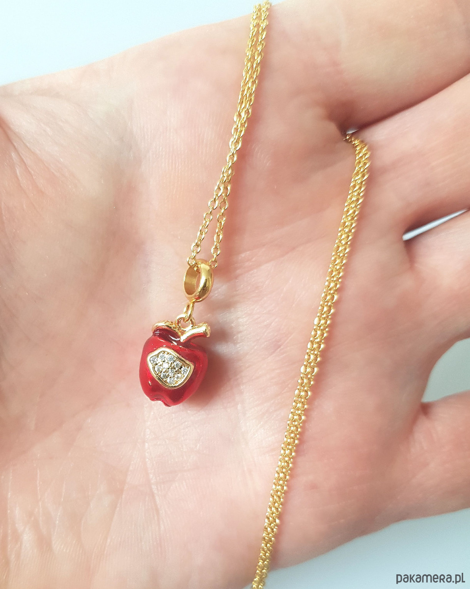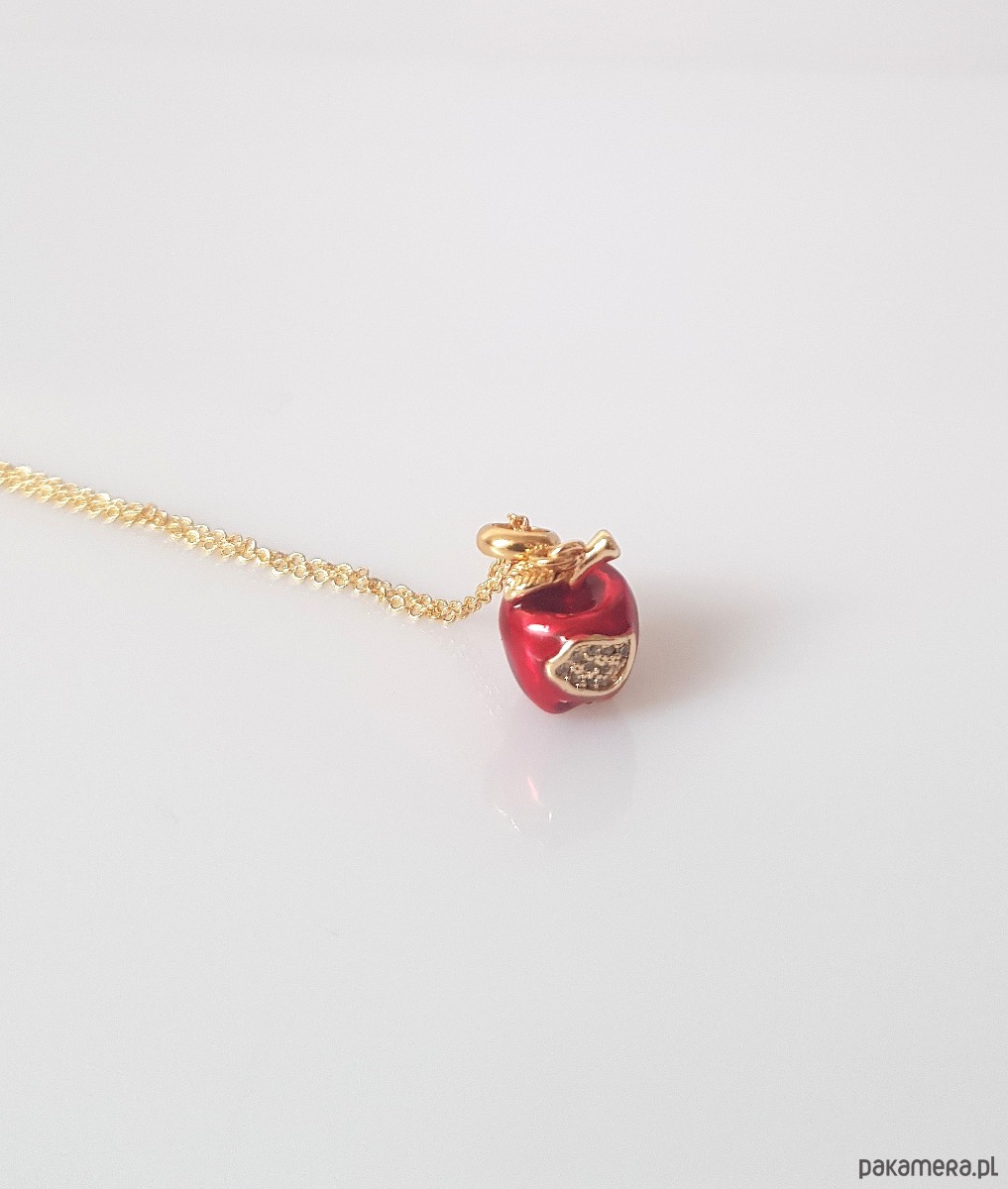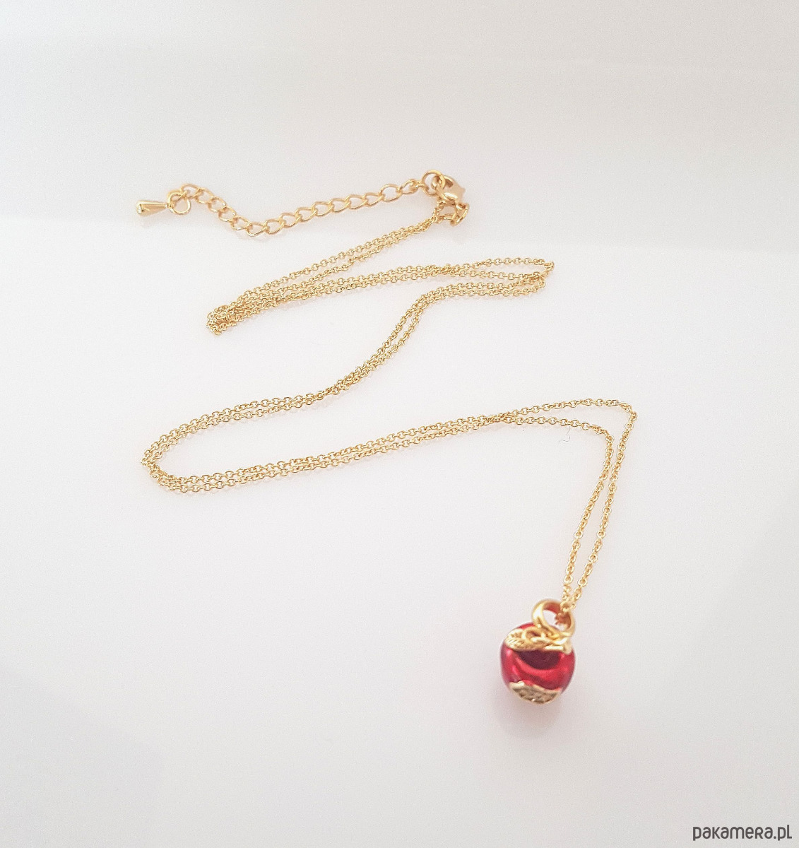 Delikatny, bardzo kobiecy, długi naszyjnik z czerwonym jabłuszkiem.