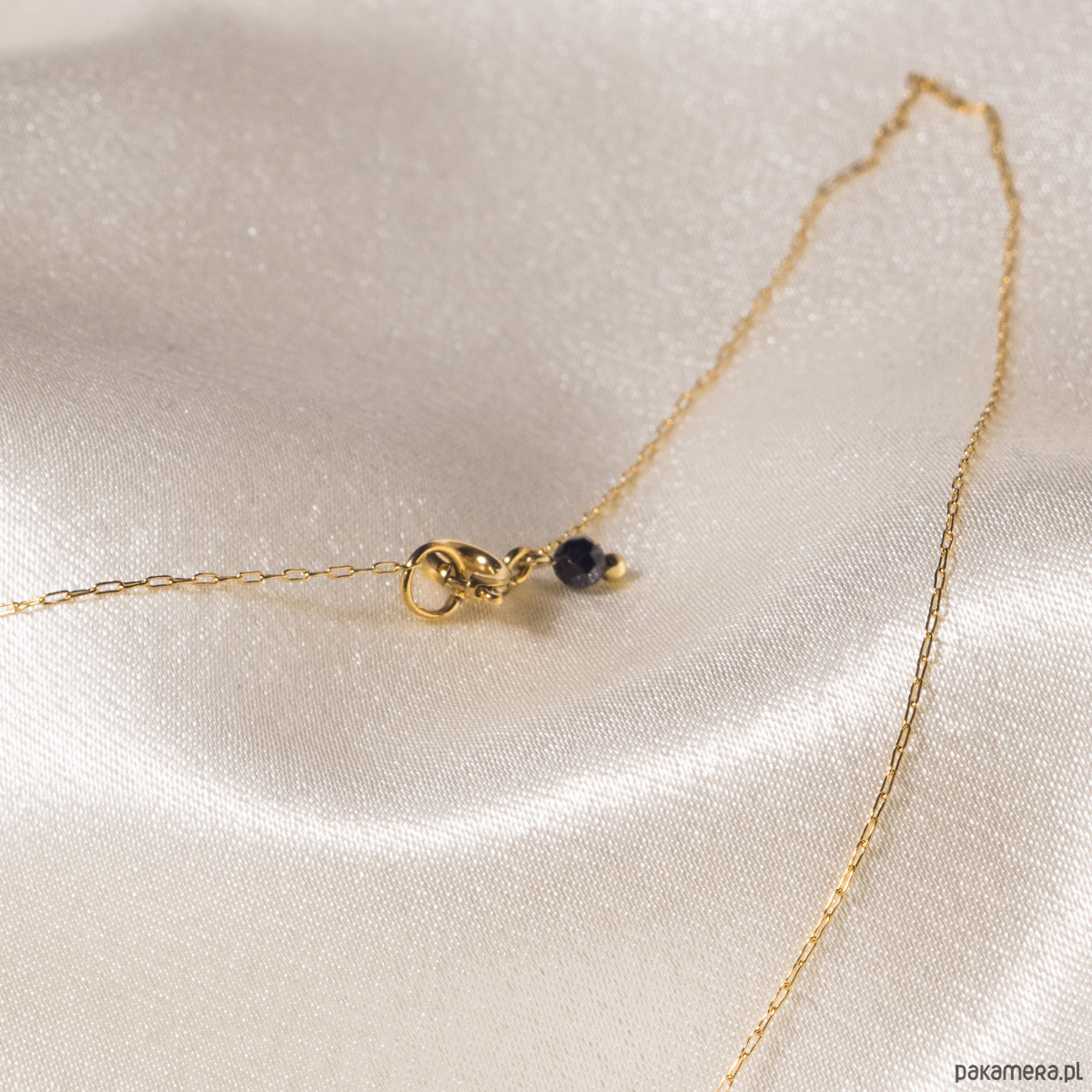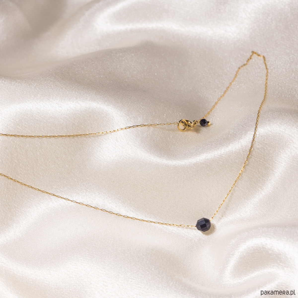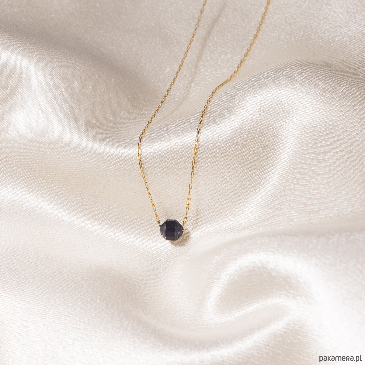 Łańcuszek z czarnym onyksem to moja propozycja na Twój naszyjnik osobisty. Delikatny splot łańcuszka pięknie komponuje się z pojedynczym kamieniem naturalnym o ciekawym fasetowaniu. Kamień będzie niemal lewitować na Twoim dekolcie.