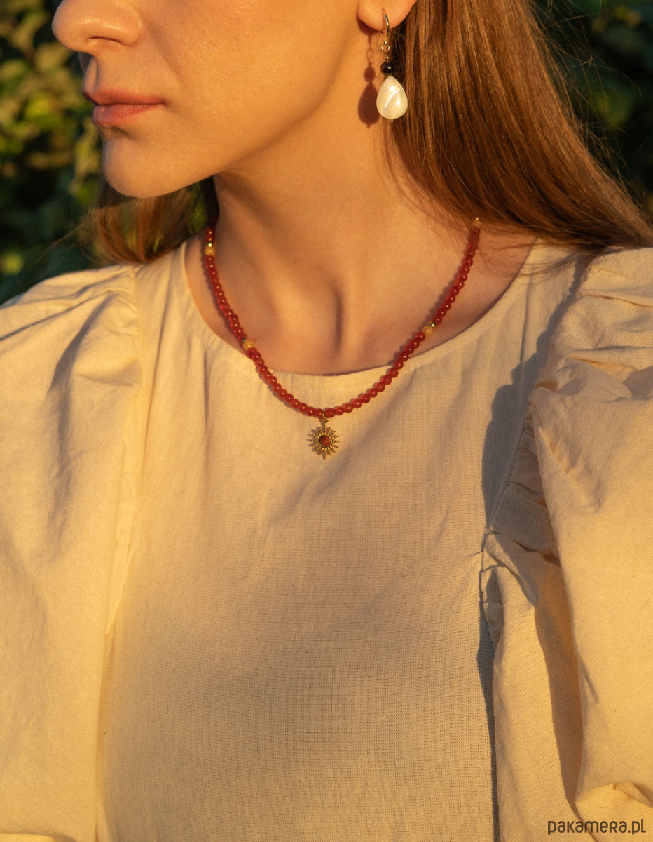 Ręcznie wykonany naszyjnik inspirowany energią słońca i ciepłem natury.