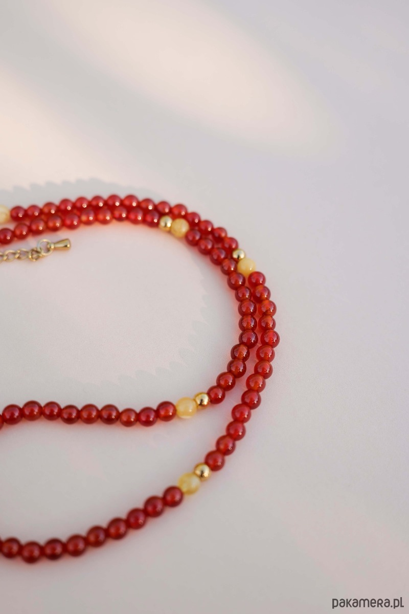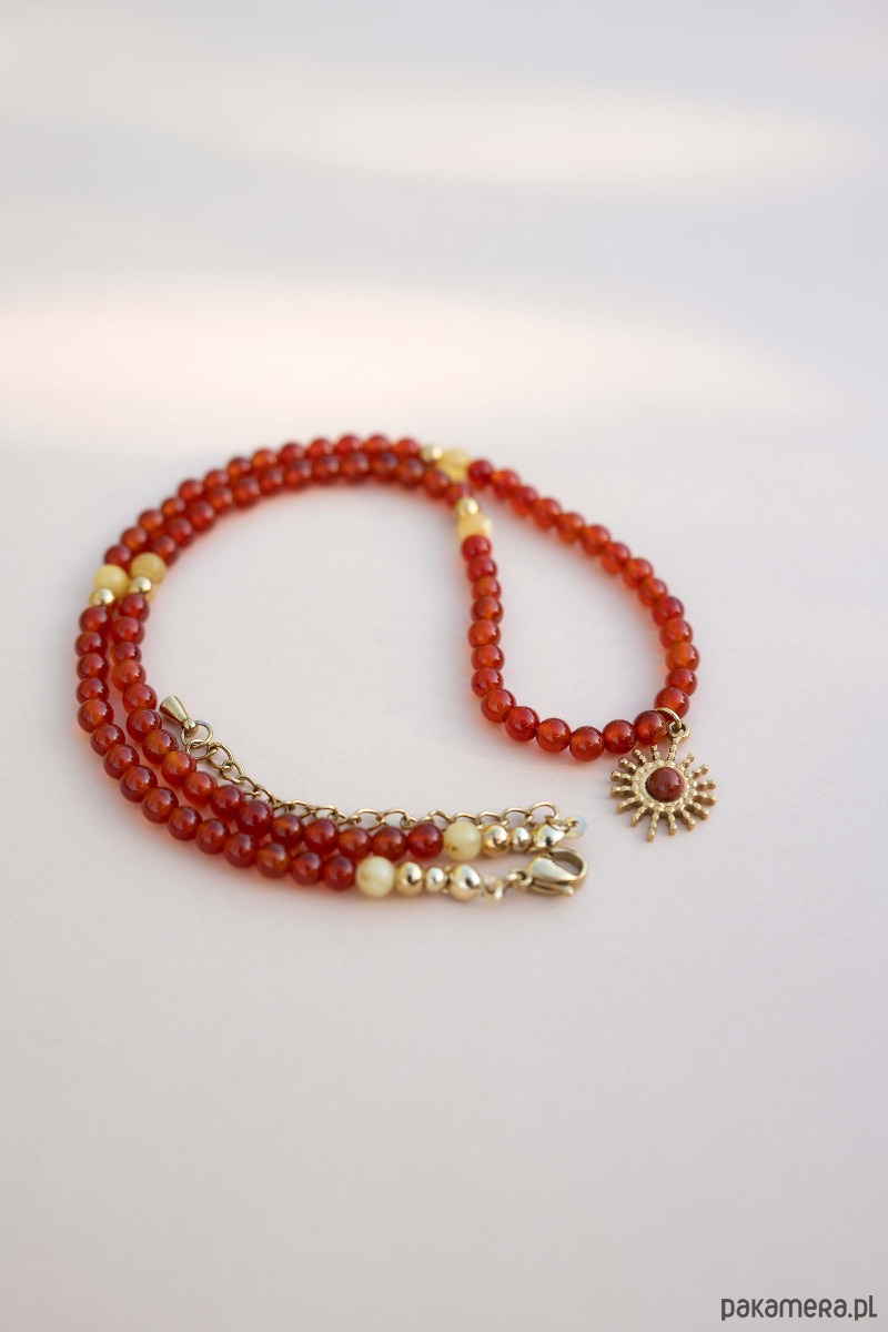 Połączenie karneolu i bursztynu tworzy kompozycję pełną światła, głębi i naturalnego blasku.