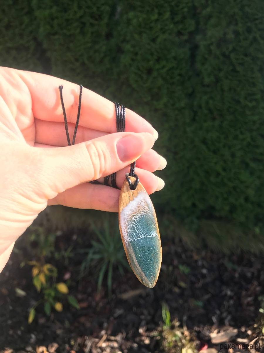 Drewniany naszyjnik deska surfingowa z dodatkiem żywicy epoksydowej ✨