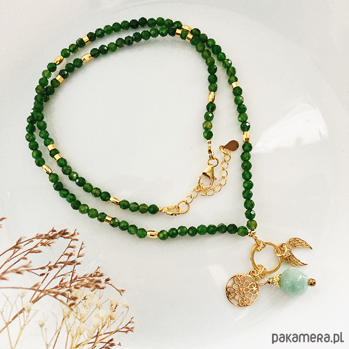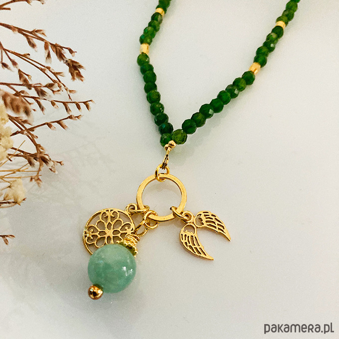 NASZYJNIK DIOPSYD ze skrzydełkami i zawieszką