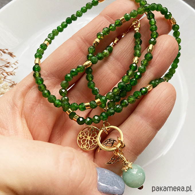 Naszyjnik może być wykonany na indywidualne zamówienie z innych kamieni: kamień księżycowy, labradoryt, granat, akwamaryn, diopsyd, malachit, cytryn, rubin, szmaragd...
