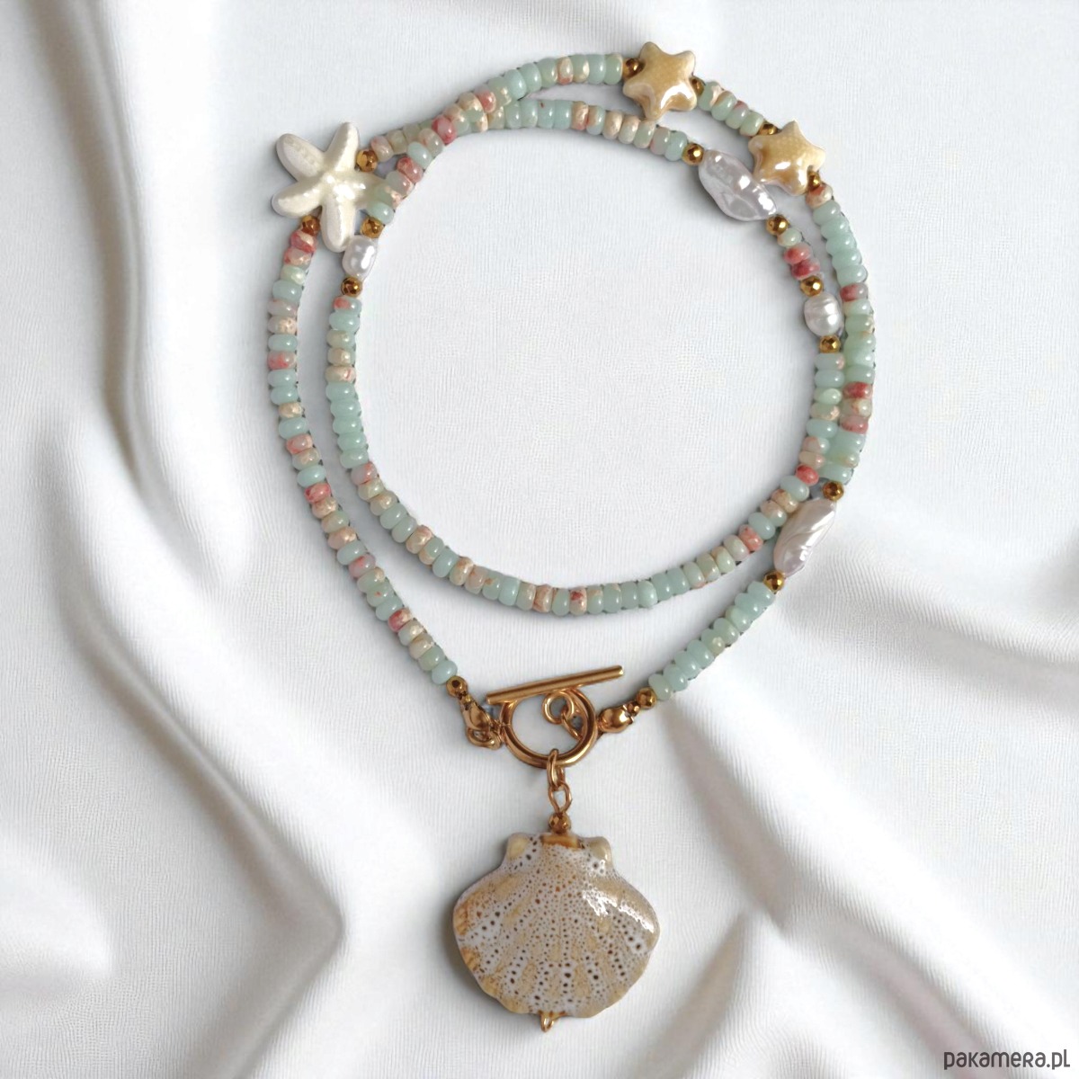 Przy zapięciu : duża zawieszka - ceramiczna muszla (ok. 25mm)