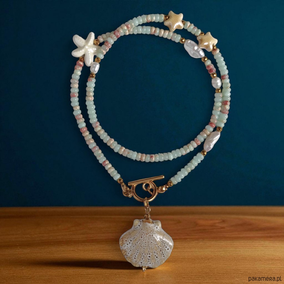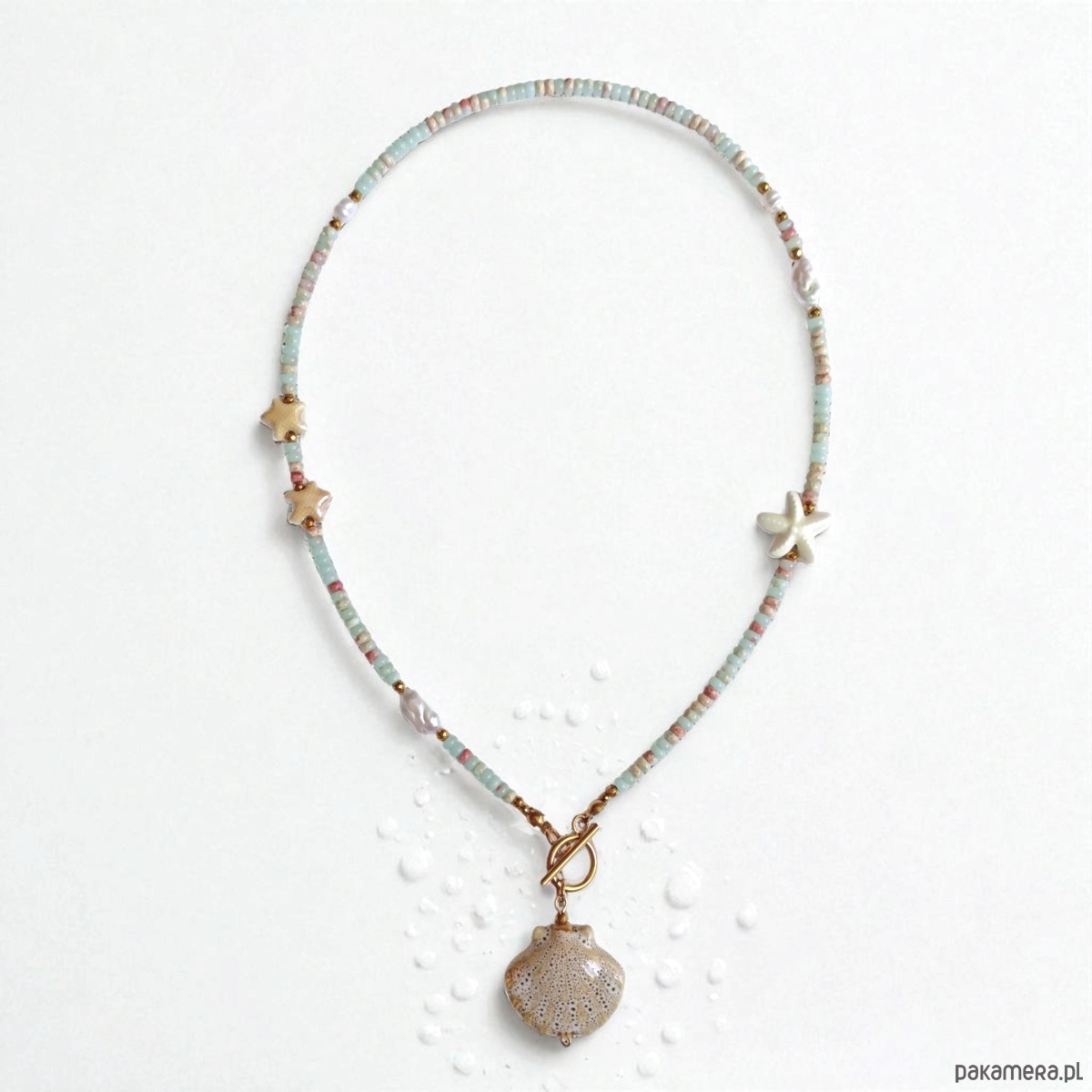 Przy zapięciu : duża zawieszka - ceramiczna muszla (ok. 25mm)