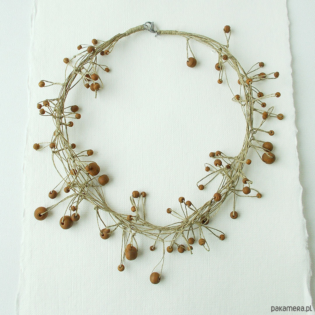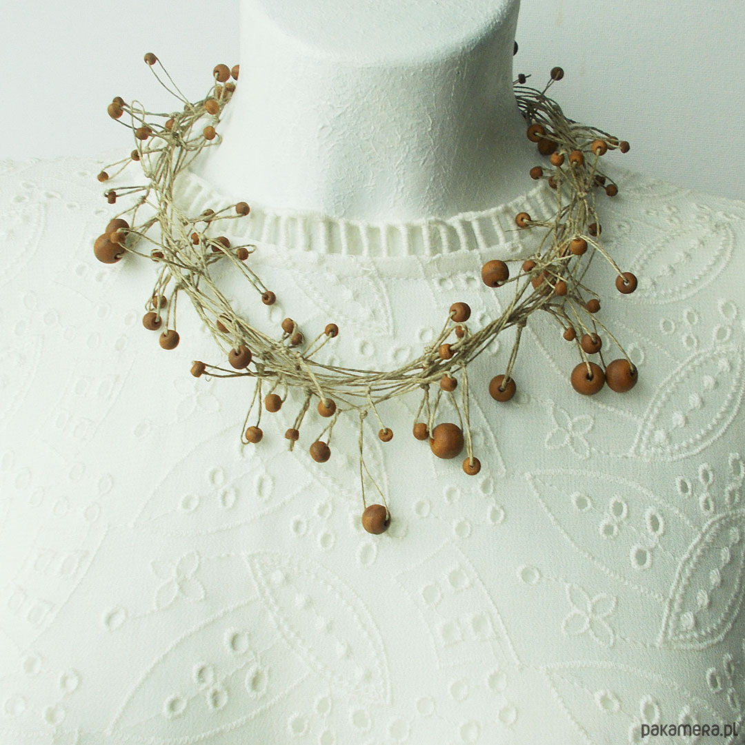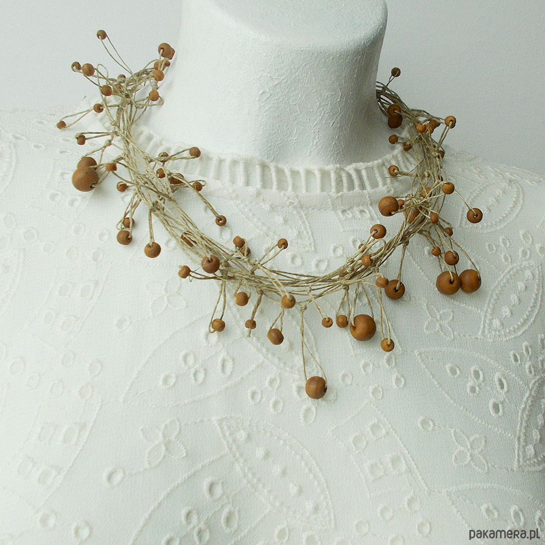 Oryginalny i lekki naszyjnik na bazie naturalnego lnu