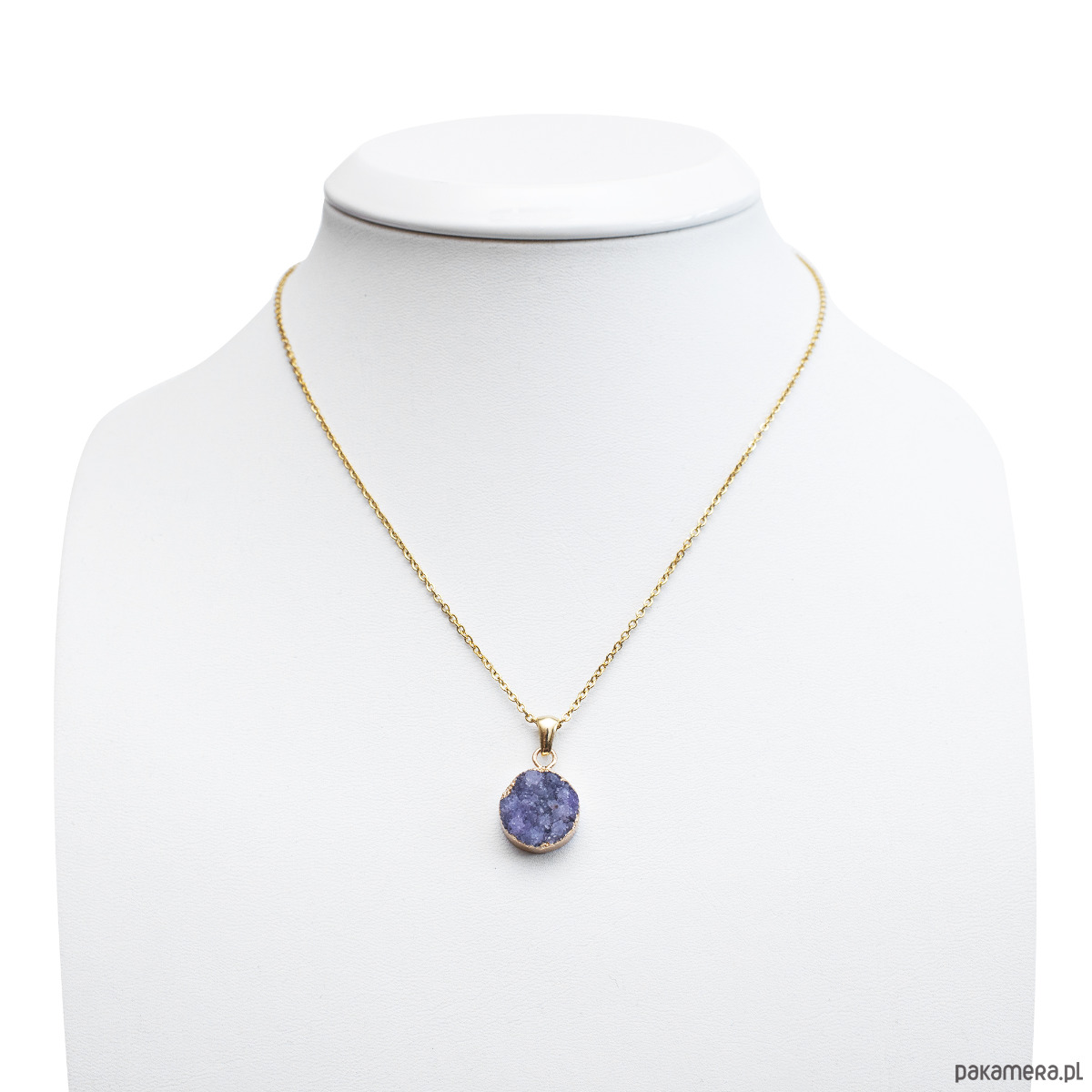 Agat jest od wieków ceniony jako kamień harmonii i ochrony. Jego energia pomaga uspokoić wzburzone emocje, wprowadzając do Twojego serca poczucie bezpieczeństwa i stabilności. Fioletowy odcień druzy dodatkowo sprzyja wyciszeniu i łagodzeniu codziennego stresu. Struktura druzy symbolizuje bogactwo wnętrza i ukryty potencjał. Agat wspiera jasność umysłu, pomagając w koncentracji oraz rozbudzając kreatywne myślenie. To idealny talizman dla osób, które szukają inspiracji i chcą zaufać swojej intuicji. Wykonanie ze stali chirurgicznej złoconej 24-karatowym złotem to gwarancja najwyższej jakości i pięknego, głębokiego koloru kruszcu. Materiał ten jest w pełni hipoalergiczny, nie ciemnieje i jest niezwykle trwały, dzięki czemu naszyjnik pozostanie olśniewający przez bardzo długi czas.