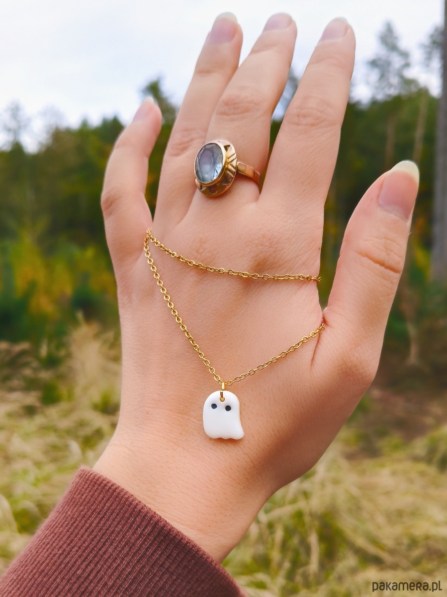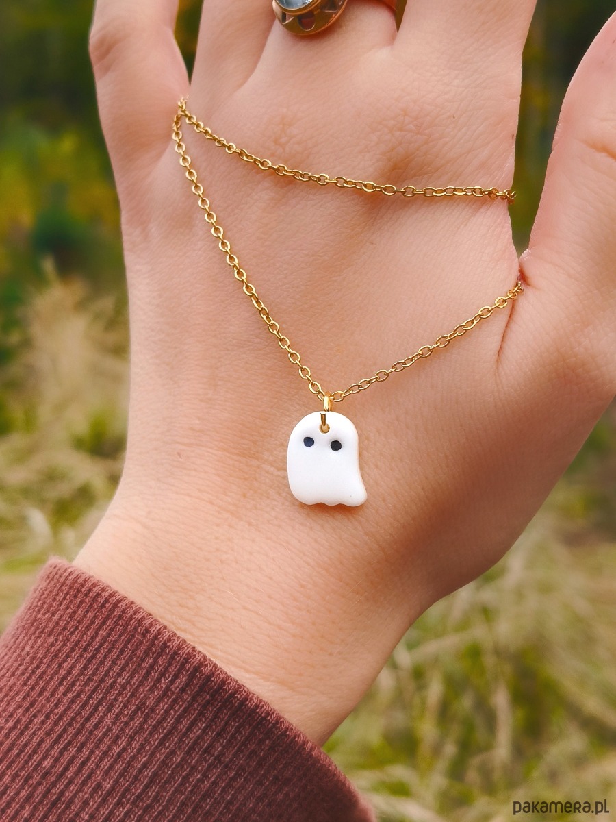 Naszyjnik duszek, wisiorek z duchem, biżuteria na halloween, duch, boho