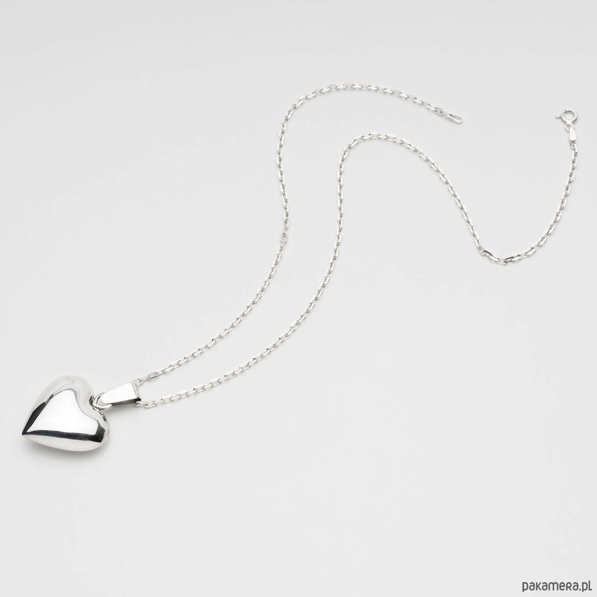 Srebrne serduszko na ozdobnym łańcuszku - naszyjnik, który wręczać można na różne okazje. Serce jest duże, pulchne , wypukłe z dwóch stron Serce symbolizuje liczne pozytywne uczucia.