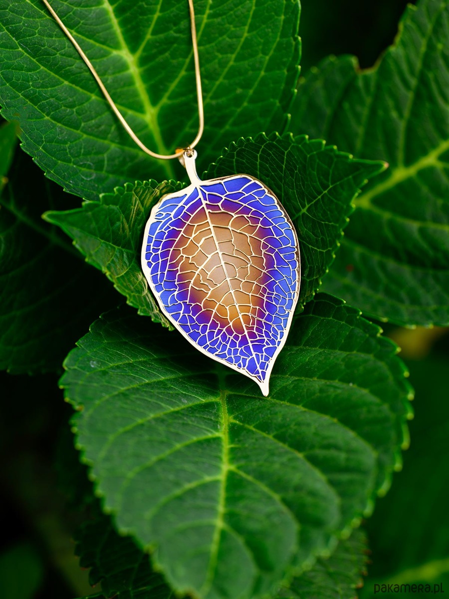Unikatowy design: Wisiorek wiernie odwzorowuje delikatną strukturę liścia, w tym jego precyzyjnie wykonane żyłki, co nadaje mu trójwymiarowości i oryginalności. To biżuteria, która opowiada historię.