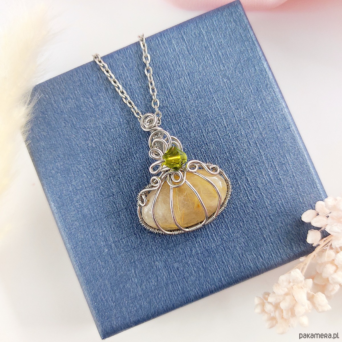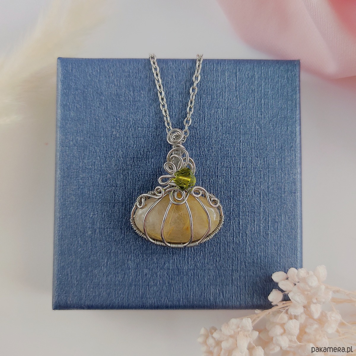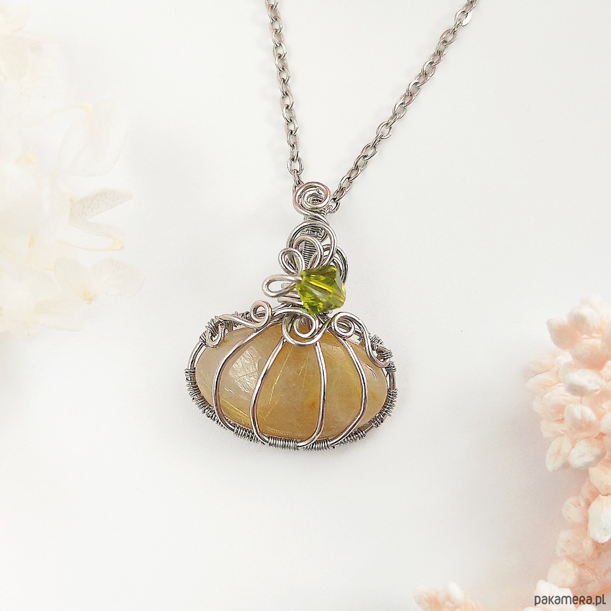 Naszyjnik Dynia Kwarc Rutylowy stal chirurgiczna wisiorek handmade wirewrapping