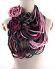 Oryginalny, designerski naszyjnik - szal, wykonany z pasów dzianiny w kolorze grafitowym, bordowym i pudrowego różu. Można go nosić jak szalik lub używać jako element stylizacji. W komplecie z 3 ręcznie wykonanymi broszkami w kolorach naszyjnika. Możliwość zamówienia naszyjnika w innym kolorze. Proszę o wcześniejszy kontakt
