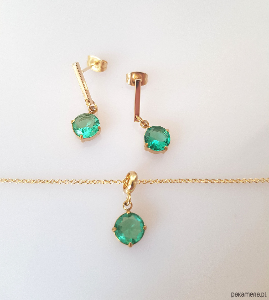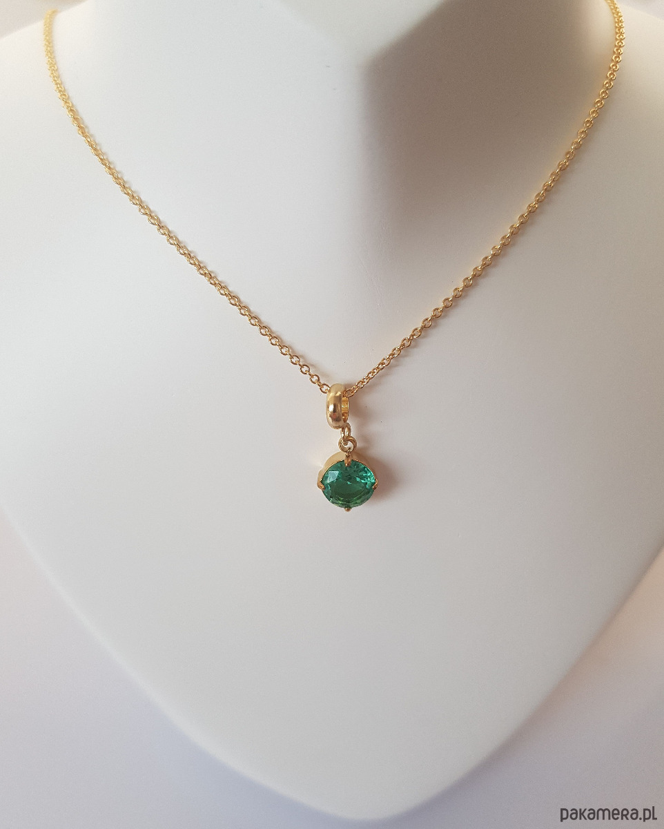 Elegancki, delikatny łańcuszek ze szmaragdową cyrkonią pięknie współpracującą ze światłem.