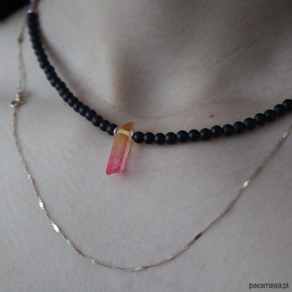 Naszyjnik ozdobiony został przepięknym soplem kwarcu o wielkości 2,5 cm.