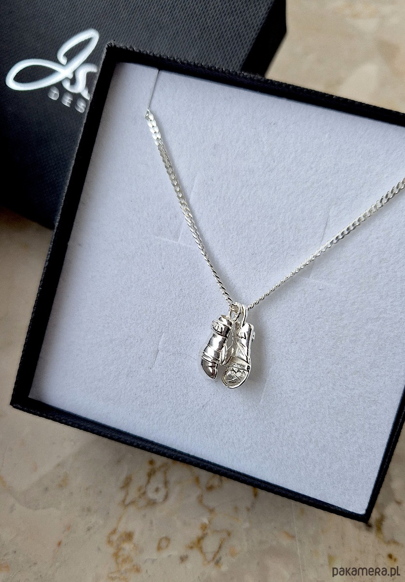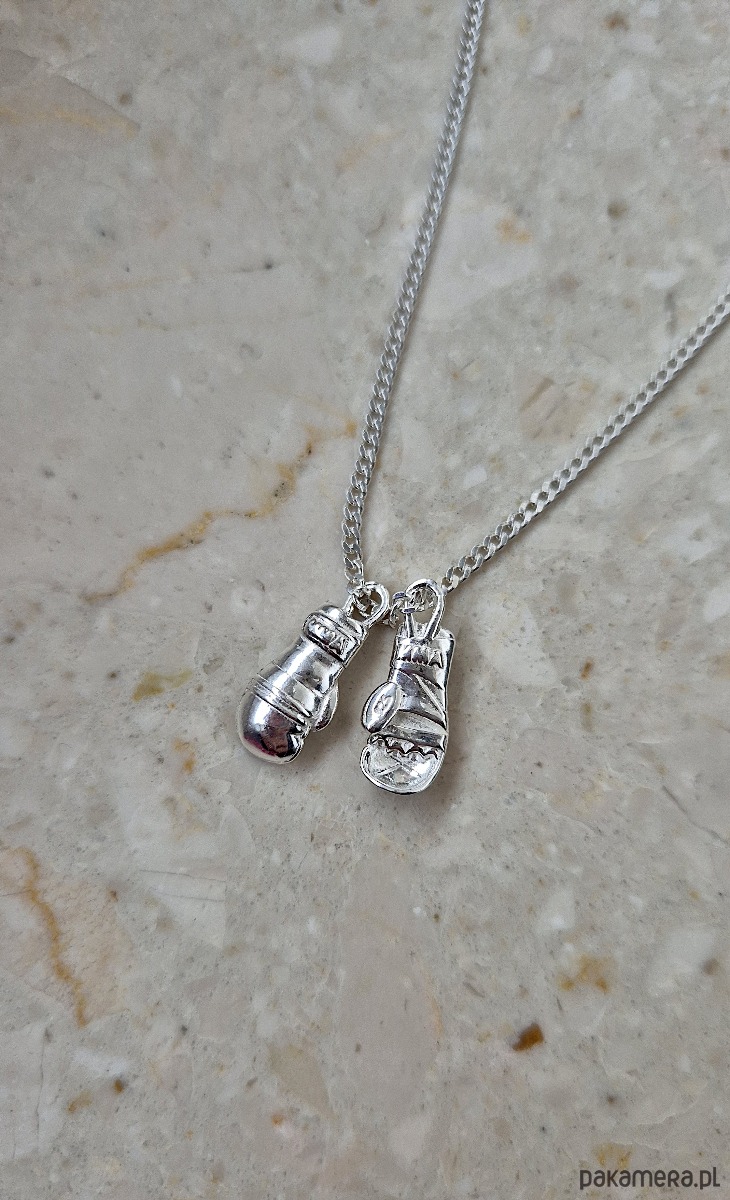 Naszyjnik z zawieszkami w kształcie rękawic MMA.