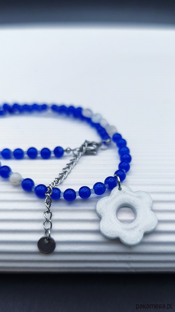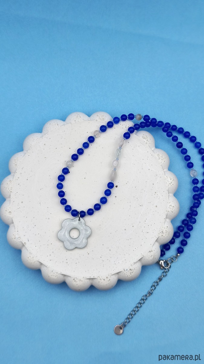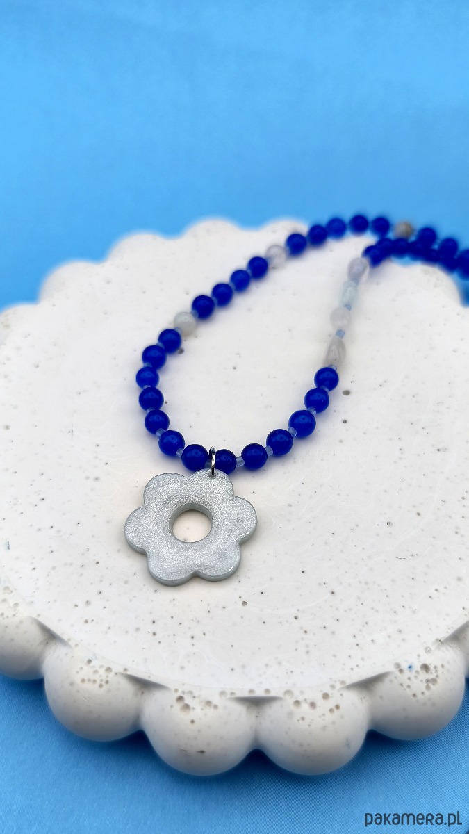 Naszyjnik FLOWER niebieski to połączenie delikatności z wyrazistym kobaltowym kolorem.