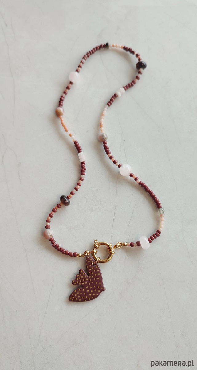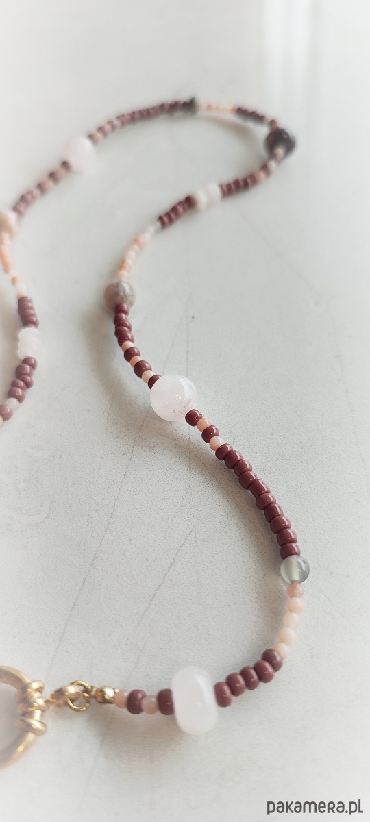 Miksuję tutaj koraliki z pięknymi dużymi kamieniami naturalnymi. Dodatków zapięcie daje nam możliwość noszenia naszyjnika na 3! sposoby.